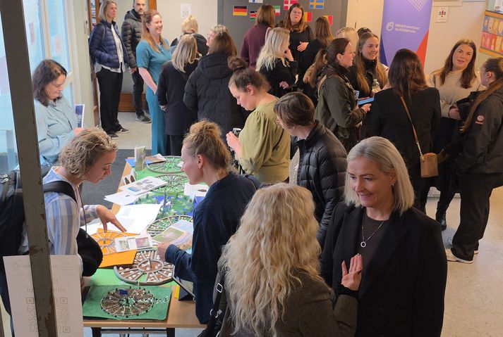 430 sunnlenskir grunnskólakennarar funduðu á Flúðum Magnús Hlynur Hreiðarsson skrifar 12. október 2025 20:03 Kolbrún Guðmundsdóttir, sem er formaður Kennarafélags Suðurlands og kennari í Sunnulækjarskóla á Selfossi. Magnús Hlynur Hreiðarsson „Gervigreind, netöryggi og skapandi verkefni“ í skólastarfi voru aðal málin á tveggja daga haustþingi kennara á Suðurlandi. Formaður Kennarafélags Suðurlands treystir sér ekki til að segja um hvort banna eigi símanotkun eða ekki í sunnlenskum skólum. Um 430 grunnskólakennarar af öllu Suðurlandi sóttu haustþingið á fimmtudaginn og föstudaginn á Flúðum en þar var m.a. boðið upp á fjölbreyttar kynningar úr skólastarfi og 25 fjölbreytta fyrirlestra. „Fyrir utan það vorum við með viðburð, sem við köllum „Líttu þér nær“ þar sem kennarar deila skemmtilegum verkefnum hver með öðrum og ég huga að við séum með svona 50 atriði til sýnis hérna inni“, segir Kolbrún Guðmundsdóttir, formaður Kennarafélags Suðurlands og kennari í Sunnulækjarskóla á Selfossi. Hvað er svona mest inn eins og sagt er í skólastarfinu í dag? „Við erum mikið að fjalla um gervigreind, netöryggi og skapandi verkefni held ég bara“. Gervigreindin, hvernig líst þér á hana í skólastarfinu? „Vel en við verðum að vanda innleiðingu, það er okkar verkefni þessa dagana, kunna að nota hana,“ segir Kolbrún. Talandi um gervigreind þá var Björn Kristjánsson verkefnisstjóri með mjög áhugaverðan fyrirlestur um þann þátt í skólastarfi, kosti og galla greindarinnar. Erindið um gervigreindina vakti mikla athygli. En símanotkun nemenda í skólanum, hvað vill Kolbrún gera í því? Þá held ég að við verðum að stýra aðgenginu”, segir hún. En viltu banna síma í skólum? „Ég veit það ekki, ég get ekki svarað því en það hefur virkað vel í þeim skóla, sem ég hef verið í að vera með símabann. Við höfum séð öðruvísi félagsleg samskipti og aukin félagsleg samskipti.” Hér má sjá þær reglur, sem gilda um notkun á símum og snjalltækjum í Flúðaskóla.Magnús Hlynur Hreiðarsson Hvernig er að vera kennari í dag? „Það er eitt besta starf í heimi af því að við fáum að vera með ungmennum og flottu fólki alla daga,” segir Kolbrún. Um 430 grunnskólakennarar af öllu Suðurlandi sóttu kennaraþingið.Magnús Hlynur Hreiðarsson Hrunamannahreppur Grunnskólar Mest lesið Trans kona á landsþingi Miðflokksins: Sagt að hún væri skömm við kvenþjóðina Innlent Ian Watkins myrtur af samföngum Erlent Snorri Másson nýr varaformaður Miðflokksins Innlent Sjö milljarða framlög frá aldamótum: Vill endurskoða rekstur Húsdýragarðsins Innlent Bein útsending: Landsþing Miðflokksins Innlent Oddvitinn ætlar ekki aftur fram Innlent Vinnuslys í bakaríi Innlent Hekla Aurora kveður með útsýnisflugi frá Reykjavík Innlent Lögreglan í Ósló beitti mótmælendur táragasi Erlent Líkamsárás við skemmtistað Innlent Fleiri fréttir Þakklátur og væntir góðs árangurs í kosningum í vor 430 sunnlenskir grunnskólakennarar funduðu á Flúðum Flóðgáttir þurfi að opnast í Gasa Oddvitinn ætlar ekki aftur fram Nýr varaformaður, bílalestir á Gasa og síðasta flugferðin Vinnuslys í bakaríi Íbúar í Laugardal uggandi: Vegagerðin hafi hlaupið á sig vegna Sundabrautar „Ég hef aldrei skorast undan neinu“ Sjö milljarða framlög frá aldamótum: Vill endurskoða rekstur Húsdýragarðsins Snorri Másson nýr varaformaður Miðflokksins Trans kona á landsþingi Miðflokksins: Sagt að hún væri skömm við kvenþjóðina Fornbílar og þjóðbúningar á Eyrarbakka í dag Sigmundur endurkjörinn formaður Viðskiptaþvinganir, vopnahlé og leikskólamál Líkamsárás við skemmtistað Smáskjálftahrina minni á atburði fyrir eldgos Hekla Aurora kveður með útsýnisflugi frá Reykjavík Barneignir og sauðfjárrækt á sviðinu í Aratungu Kínverskir bílar gætu verið notaðir til njósna „Pólitík hjá ríkisstofnun sem á bara að vinna fyrir borgarana“ Mætti með hníf í sund og var vísað út Biden í geislameðferð við krabbameini Fann fyrir ákalli um ferska forystu Frambjóðendum fækkar og kínverskir bílar njósna um Norðurlandabúa Sendir Svein Andra í mál við ríkið Bergþór dregur framboðið til baka „Þetta er pólitísk vakning“ Fagnar miklum fjölda áskorana og liggur undir feldi Segir tölur um ungloðnu gríðarlega jákvæðar Bein útsending: Landsþing Miðflokksins Sjá meira