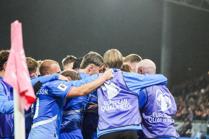 Uppgjörið: Ísland - Frakkland 2-2 | Frækin úrslit gegn Frökkum Ingvi Þór Sæmundsson skrifar 13. október 2025 21:00 Kristian Nökkvi Hlynsson fagnar jöfnunarmarki sínu gegn Frakklandi. vísir/anton Tuttugu og sjö árum eftir jafnteflið fræga við heimsmeistara Frakka á Laugardalsvelli gerði íslenska karlalandsliðið í fótbolta annað jafntefli við Frakka á sama velli í kvöld. Lokatölur 2-2. Arnar Gunnlaugsson var í byrjunarliði Íslands í leiknum 5. september 1998 en í kvöld var hann á hliðarlínunni. Og hann sá íslenska liðið ná fræknum úrslitum gegn einu besta landsliði heims. Ísland var 1-0 yfir í hálfleik, þökk sé marki Guðlaugs Victors Pálssonar á 39. mínútu. Á ótrúlegum sjö mínútna kafla í seinni hálfleik litu svo þrjú mörk dagsins ljós. Christopher Nkunku jafnaði fyrir Frakka á 63. mínútu og fimm mínútum síðar kom Jean-Philippe Mateta þeim yfir, 1-2. En nánast í næstu sókn jöfnuðu Íslendingar. Þar var að verki Kristian Nökkvi Hlynsson eftir frábæra sókn íslenska liðsins. Þrátt fyrir stífa pressu Frakklands það sem eftir lifði leiks hélt Ísland út og troðfullur Laugardalsvöllurinn fagnaði íslensku strákunum vel og innilega þegar flautað var til leiksloka. Húh!vísir/anton Ísland er áfram í 3. sæti D-riðils undankeppni HM 2026 en nú með fjögur stig þegar liðið á tvo leiki eftir. Úkraína er þremur stigum á undan Íslandi en liðin mætast í Varsjá í lokaumferð riðilsins. Það verður að öllum líkindum hreinn úrslitaleikur um 2. sætið í riðlinum og þar af leiðandi sæti í umspili. Ef íslenska liðið spilar eins og það gerði í þessum tveimur leikjum í Laugardalnum - já, Úkraínuleikurinn var að stórum hluta góður - eru því allir vegir færir. Það er allavega eitthvað að gerjast eftir erfið ár. Og því ber að fagna. Svipuð uppskrift og í París Arnar gerði tvær breytingar á byrjunarliðinu. Daníel Tristan Guðjohnsen tók stöðu bróður síns, Andra Lucas, sem tók út leikbann og Logi Tómasson kom inn fyrir Jón Dag Þorsteinsson. Ísland spilaði ekki ósvipað og í fyrri leiknum gegn Frakklandi, með þriggja/fimm varna vörn án boltans en fjögurra manna vörn með boltann. Sterka leikmenn vantaði í franska liðið, ber þar helst að nefna Kylian Mbappé og Ousmané Dembélé, en engum datt í hug að vorkenna Didier Deschamps enda mannval Frakklands gríðarlegt. Sævar Atli Magnússon var í byrjunarliðinu en meiddist undir lok fyrri hálfleiks.vísir/anton Frakkar létu strax af sér og á 2. mínútu fékk Nkunku dauðafæri eftir hornspyrnu en Elías Rafn Ólafsson varði. Eftir að hafa verið 62 prósent með boltann gegn Úkraínu var allt annað uppi á teningnum í kvöld. Frakkar voru miklu meira með boltann og Íslendingar hörfuðu og vörðu miklum tíma aftarlega á vellinum. Íslenska liðinu gekk ágætlega að halda aftur af því franska sem var þó alltaf ógnandi. Matea, sem var í byrjunarliðinu í fyrsta sinn í landsleik, skaut framhjá á 21. mínútu. Forystunni náð Sóknir Íslands voru ekki margar en í einni þeirra sótti Albert aukaspyrnu úti við hornfánann vinstra megin. Hann tók spyrnuna, setti lágan bolta inn á hættusvæðið og hann barst á Guðlaug Victor sem teygði sig í boltann og kom honum yfir línuna. Annað mark Guðlaugs Victors í undankeppninni en hann skoraði einnig í stórsigrinum á Aserbaísjan í síðasta mánuði. Eftir nánast óaðfinnanlegan varnarleik var íslenska liðið stálheppið að fá ekki á sig jöfnunarmark í uppbótartíma fyrri hálfleiks. Þá fékk Michael Olise dauðafæri en Elías varði vel, boltinn hrökk til Mateta en Mikael Egill Ellertsson bjargaði á línu. Eftir að gengið hafði verið úr skugga um að Mikael Egill hefði ekki fengið boltann í höndina flautaði Orel Grinfeeld til hálfleiks. Guðlaugur Victor Pálsson er tveggja marka maður í þessari undankeppni.vísir/anton Kristian kom inn á fyrir Daníel Tristan í hálfleik. Í uppbótartíma fyrri hálfleiks hafði svo Brynjólfur Andersen Willumsson komið inn á fyrir Sævar Atla Magnússon. Frakkar héldu áfram að einoka boltann í seinni hálfleik og Íslendingar voru nær eingöngu í varnarhlutverki. En þar leið þeim bara býsna vel. Sverrir Ingi Ingason og Daníel Leó Grétarsson léku eina sína bestu leiki í landsliðstreyjunni og hreinsuðu frá í óteljandi skipti. Fyrir framan vörnina hlupu Skagamennirnir ungu Hákon Arnar Haraldsson og Ísak Bergmann Jóhannesson svo á við allavega þrjá. Slæmi kaflinn Það er þó erfitt að halda jafn sterku liði og Frakklandi algjörlega í skefjum og á 61. mínútu fékk Nkunku færi á fjærstöng eftir aukaspyrnu en hitti ekki markið. Nkunku var búinn að vara íslensku vörnina við og tveimur mínútum síðar jafnaði hann metin. Hann fékk boltann á vinstri kantinum, fór á hægri fótinn og skoraði með hárnákvæmu skoti í fjærhornið. Guðlaugur Victor var ragur í sínum varnarleik og aldrei þessu vant var engin hjálp í augsýn. Frakkar héldu áfram að hamra járnið meðan það var heitt. Á 68. mínútu sóttu gestirnir aftur upp vinstra megin, varamaðurinn Maghnes Akliouche fékk boltann og sendi hann þvert fyrir markið á Mateta sem skoraði af stuttu færi, sitt fyrsta landsliðsmark. Íslendingar fagna marki Kristians.vísir/anton En undrin eiga sér stað þegar maður á síst von á því og aðeins tveimur mínútum eftir markið hjá Mateta var staðan orðin jöfn, 2-2. Eftir laglegt spil íslenska liðsins sendi Ísak boltann inn fyrir vörn Frakka á Albert. Vinstra megin við hann var Kristian og Albert var meðvitaður um það. Hann renndi boltanum til hliðar á Kristian sem lagði boltann fyrir mig og afgreiddi færið svo af stakri yfirvegun og jafnaði. Þær tuttugu mínútur sem eftir voru af leiknum sóttu Frakkar. Auðvitað. En 