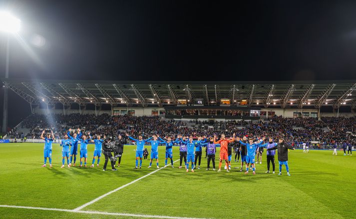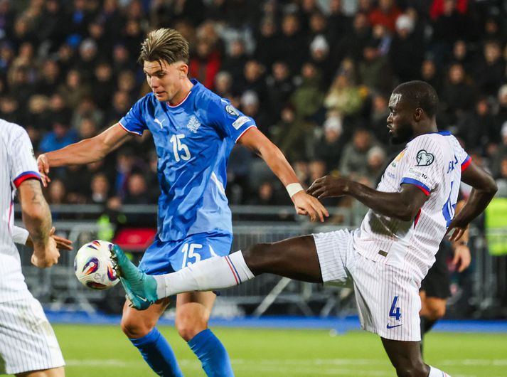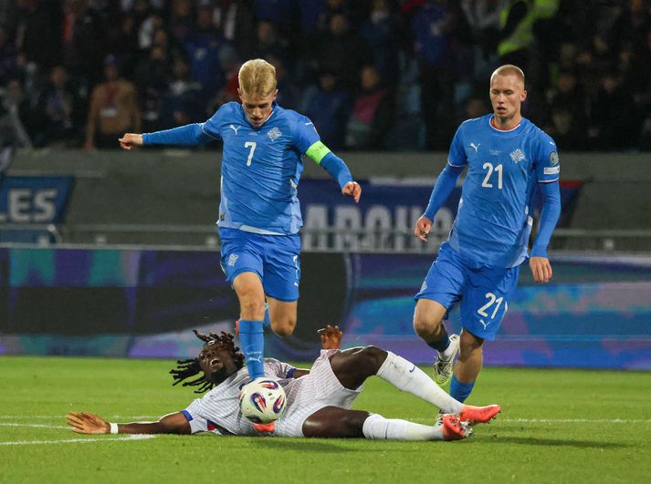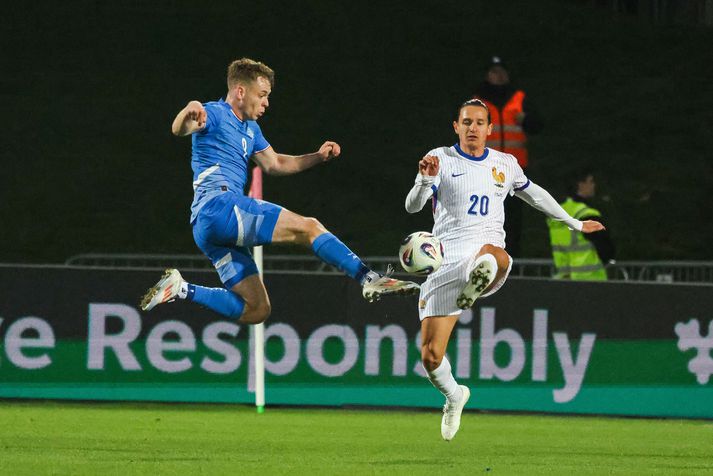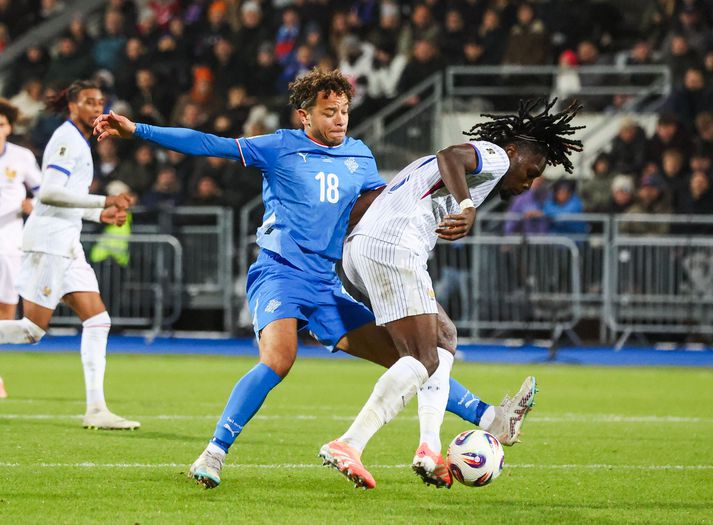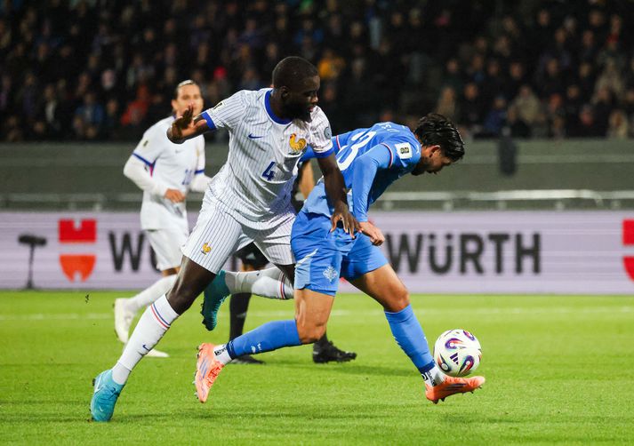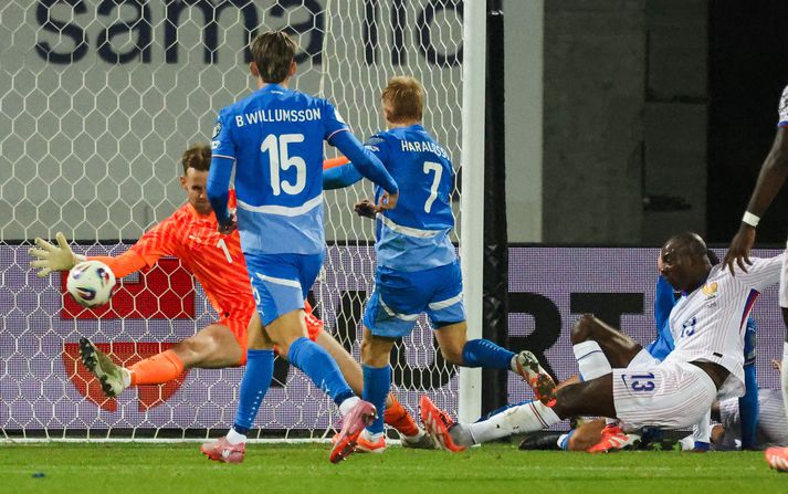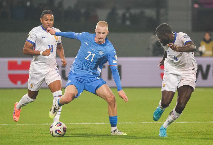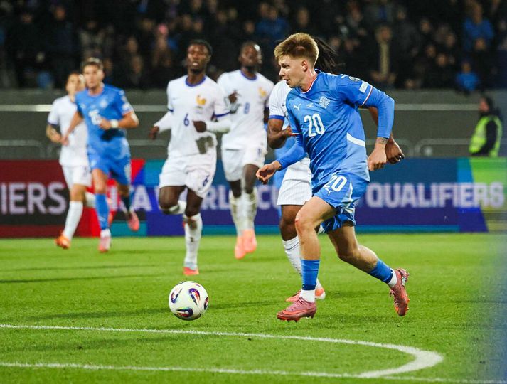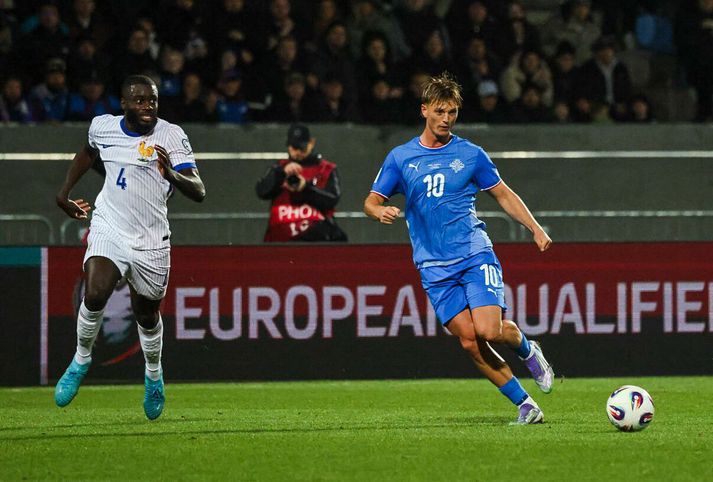 Ljósmyndarinn Anton Brink Hansen var með myndavélina á lofti og fangaði andrúmsloftið í þessu frækna jafntefli sem gefur Íslandi von um að komast á HM næsta sumar. Lokaleikirnir í riðlinum verða svo í nóvember þegar Ísland spilar útileiki við Asera og Úkraínumenn. Myndaveislu frá gærkvöldinu má sjá hér að neðan. Strákarnir þökkuðu vel fyrir magnaðan stuðning í Laugardalnum.vísir/Anton Strákarnir fögnuðu vel eftir að hafa komist yfir gegn Frökkum.vísir/Anton Sævar Atli Magnússon í baráttu við Dayot Upamecano, miðvörðinn fíleflda sem spilar með Bayern München.vísir/Anton Guðlaugur Victor Pálsson renndi sér á hnjánum eftir að hann skoraði í lok fyrri hálfleiks.vísir/Anton Daníel Tristan Guðjohnsen kom inn í byrjunarlið Íslands í staðinn fyrir bróður sinn, Andra Lucas.vísir/Anton Mikael Egill Ellertsson býr yfir hraða sem erfitt er að ráða við.vísir/Anton Didier Deschamps fór bara með eitt stig heim frá Íslandi.vísir/Anton Tólfan var á sínum stað og lét vel í sér heyra.vísir/Anton Það var uppselt á leikinn í kvöld, rétt eins og gegn Úkraínu á föstudaginn.vísir/Anton Fyrirliðinn Hákon Arnar Haraldsson á ferðinni.vísir/Anton Andri Lucas Guðjohnsen og William Saliba að kljást.vísir/Anton Okkar mönnum var létt eftir að hafa náð að innbyrða stig.vísir/Anton Sævar Atli Magnússon og Florian Thauvin í skemmtilegum dansi.vísir/Anton Elías Rafn Ólafsson átti magnaðar markvörslur í leiknum.vísir/Anton Mikael Anderson kom inn á í seinni hálfleiknum.vísir/Anton Brynjólfur Willumsson í baráttu við Upamecano.vísir/Anton Elías Rafn Ólafsson sá til þess að staðan væri 1-0 í hálfleik.vísir/Anton Kristian Hlynsson skoraði markið mikilvæga sem tryggði Íslandi stig.vísir/Anton Albert Guðmundsson átti stoðsendinguna í jöfnunarmarkinu.vísir/Anton Arnar Gunnlaugsson hlýtur að vera sáttur eftir jafntefli gegn stórliði Frakka.vísir/Anton Kristian Hlynsson fagnaði markinu sínu vel eins og tæplega 10.000 áhorfendur í Laugardalnum í gær.vísir/Anton