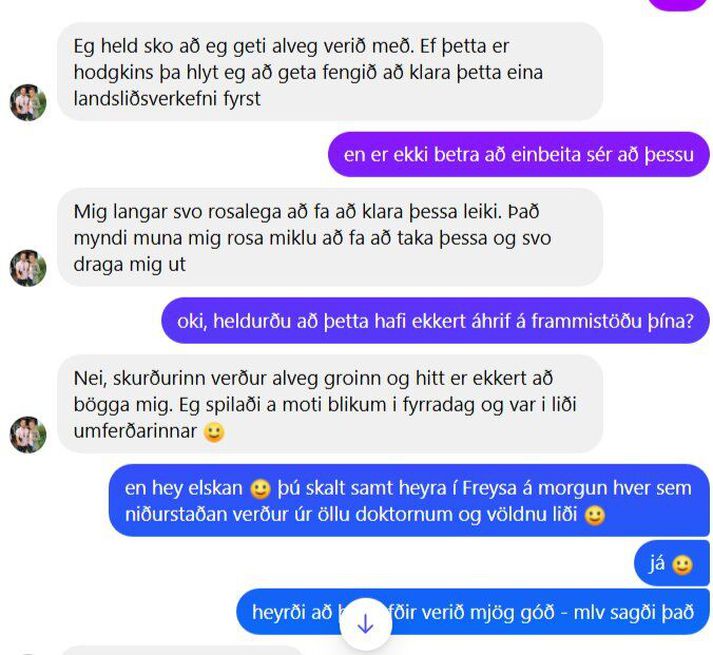 „Fyrsta sem læknirinn sagði þegar hann sagði mér að ég væri krabbamein var að ef þú ættir að velja þér krabbamein þá myndirðu velja þetta. Svo kom að þú gætir þurft að hætta í fótbolta, orðið ófrjó og allskonar hræðilegar staðreyndir. Og lífslíkur þegar hann tilkynnir mér þetta, minnir að hann hafi sagt, að það eru 85% líkur á því að þú verður á lífi eftir 5 ár.“