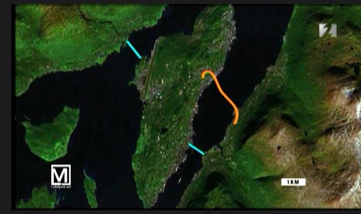 Tromsøbrú var byggð á árunum 1958 til 1960 og tengdi eyna Tromsø við fastaland Noregs. Hún var opnuð þann 3. júlí 1960 af Einari Gerhardsen, forsætisráðherra Noregs, og var hún þá lengsta brú í Norður-Evrópu, 1.036 metra löng og 36 metra há. Brúartollur var innheimtur fyrstu tíu árin. Á Tromsøbrú eru tvær akreinar fyrir bíla, ein í hvora átt. Öðrumegin á brúnni er sérstök gönguleið fyrir gangandi vegfarendur en hinumegin sérstök hjólaleið fyrir reiðhjólafólk. Framundan er að breikka hjólastíginn á Tromsøbrú um hálfan metra.Tenk Tromsø Opnun brúarinnar varð til þess að íbúum Tromsø fjölgaði samfara vaxandi bílaeign. Umferðarteppur við brúna urðu tíðari með árunum og að því kom að hún annaði ekki umferðinni. Því var ákveðið að grafa einnig jarðgöng undir Tromsøsund og voru þau opnuð árið 1994. Tromsøysundsgöngin er 3,5 kílómetra löng. Umferð hjólreiðamanna og gangandi vegfarenda er ekki leyfð um göngin.Wikimedia Tvenn samhliða göng voru grafin með alls fjórum akreinum, tveimur í hvora átt. Þar sem göngin ná niður á 102 metra dýpi þurfti að hafa þau meira en þrefalt lengri en brúna til að jafna hallann, eða 3.500 metra löng. Umferð gangandi vegfarenda og hjólreiðafólks er hins vegar bönnuð um göngin vegna slysahættu, eins og tilfellið yrði með Sundagöng. Brúarhandriðið var hækkað eftir röð sjálfsvíga.Wiki/Elin Olsen Tromsøbrú hefur frá fyrstu tíð verið vinsæl gönguleið, þrátt fyrir að þar gusti meira en inni í bænum. Um fimmtán mínútur tekur að ganga yfir brúna á venjulegum gönguhraða og af henni fæst mikið útsýni. Og hjólaleiðin er orðið það mikið notuð að búið er að ákveða að breikka reiðhjólastíginn um hálfan metra með því að bæta utan á brúna án þess að þrengja bílaakreinar. Nokkur sjálfsvíg á innan við einu ári vörpuðu skugga á brúna. Þau urðu til þess að árið 2005 var brúarhandriðið hækkað til að hindra að fólk gæti stokkið fram af. Sú ráðstöfun reyndist vel og í skýrslu þrettán árum síðar kom fram að ekkert sjálfsvíg hafði orðið á brúnni eftir breytinguna. Brúin yfir Sandnessund tengir Tromsø og Kvaløya. Flugvöllurinn á Tromsø er við brúarsporðinn..wikimedia/Guttorm Raknes Árið 1974 vígði Haraldur krónprins, núverandi konungur, aðra stórbrú í Tromsø, Sandnessundsbrúna, sem tengdi Tromsø við Kvaløya. Sú brú er í sama stíl en ennþá stærri, 1.220 metra löng. Brúartollur var innheimtur á henni í átta ár. Tromsø liggur mun norðar en Ísland og íbúarnir upplifa heimskautaveður með vetrarstormum, snjókomu og ísingu. Þótt oft blási hressilega er Tromsøbrú sjaldan lokað vegna veðurs og þá aðeins um skamma stund í hvert sinn. Þannig var brúin lokuð vegna veðurs í samtals fimm og hálfa klukkustund árið 2022 og í samtals fjórar klukkustundir árið 2023 og dreifðust þessar lokanir á nokkra daga. Kortið sýnir Tromsø og brýrnar tvær með ljósgrænum lit og jarðgöngin með appelsínugulum lit. Tromsøbrú er sunnar, Sandnessundsbrú norðar.skjáskot/Stöð 2 Árið 1960, þegar fyrri brúin var opnuð, bjuggu 12 þúsund manns í Tromsø. Áratug síðar, árið 1970, var íbúafjöldinn kominn upp í 38 þúsund manns. Núna búa um 80 þúsund manns í Tromsø, en hluti af fólksfjölguninni er vegna sameiningar við nærliggjandi sveitarfélög. Árið 2002 var Tromsøbrú vernduð sem mikilvægar vegminjar. Hún var svo friðlýst árið 2008 af norska menningarmálaráðuneytinu. Stöð 2 heimsótti Tromsø árið 2011 og gerði þá þessa frétt: