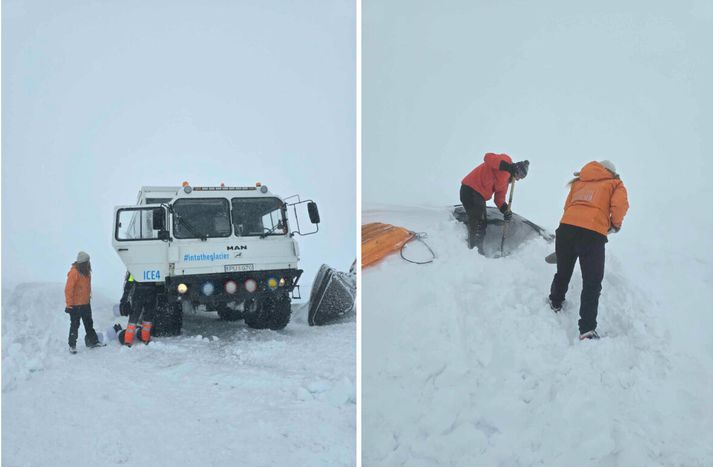 Þriðja barnið er æðislegur íshellir Rakel Sveinsdóttir skrifar 20. október 2025 07:03 Birgitta Björg Jónsdóttir, framkvæmdastjóri Into The Glacier, byrjaði fyrst að vinna hjá fyrirtækinu samhliða háskólanámi. En tók við rekstrinum árið 2023 og vatt sér þá strax í það spennandi verkefni að endurbyggja manngerða íshelli fyrirtækisins í Langjökli. Enda elskar Birgita jökla! Vísir/Anton Brink „Já mamma er algjör nagli,“ segir Birgitta Björg Jónsdóttir kát. Sjálf eflaust ekkert síðri nagli því Birgitta er framkvæmdastjóri Into the Glacier, snjóbrettakappi, gift tveggja barna móðir sem hjólar í vinnuna allan ársins hring: Frá Hafnarfirði í Klettagarða við Sæbraut! Að ung kona veiti svona fyrirtæki forystu er í raun athyglisvert út af fyrir sig. Ekki aðeins vegna þess að þetta er ferðaþjónustufyrirtæki sem býður upp á upplifanir inni í manngerðum jöklahelli á Langjökli, heldur líka vegna þess að til að komast þangað þarf að keyra á soddan trukkum að það er leit af öðru eins. „Já monster-trukkarnir okkar eru breyttir herbílar frá Þýskalandi sem voru víst notaðir til að flytja sprengjuflaugar,“ segir Birgitta. Sem sjálfri finnst ekki verra þegar eitthvað smá vesen gerist upp á jökli. Eða „bras“ eins og hún kallar það. „Ég man til dæmis eftir ferð upp á Langjökli í febrúar. Veðrið var svo brjálað að það sást ekki út um gluggana en við vorum í vettvangsferð í skólanum. Allir bílar festust og það tók okkur marga klukkustundir að losa um þá. Ferðin sem hófst klukkan 8 um morguninn, lauk því ekki fyrr en klukkan eitt um nóttina, svo mikið bras var þetta,“ segir Birgitta en bætir við: Ég kom hins vegar heim og sagði einfaldlega: Þetta var besti dagur lífs míns!“ Því meira bras, því meira gaman segir Birgitta. Sem strax í æsku þræddi jöklana og hálendið með mömmu sinni. Sem Birgitta segir vera algjöran nagla. Enda nagli sjálf; nú framkvæmdastjóri Into the Glacier sem ferðast með ferðalanga í monster-trukkum í manngerðan íshelli í Langjökli. Mamman á jeppanum Birgitta tók við rekstri Into the Glacier árið 2023, en byrjaði þó að vinna þar miklu fyrr því samhliða námi og á sumrin vann Birgitta sem leiðsögumaður og því þekkir hún fyrirtækið í raun vel nánast frá upphafi. Birgitta er sjálf fædd árið 1993 og það er mjög auðheyrt að stærsta fyrirmyndin í hennar lífi er mamma hennar, Sigríður Ármannsdóttir. „Mamma var ein með okkur fjögur systkinin en það stoppaði hana þó ekki í því að fara með okkur í útivistarferðir. Við fórum til dæmis alltaf í aðventuferðina upp á Bása og ég hef eflaust farið í tjaldútilegur um hringveginn oftar en ég get talið,“ segir Birgitta og bætir við: „Þegar ég var 12 ára keypti mamma sér síðan jeppa og eftir það fórum við í endalausar ferðir um jökla og hálendi. Á unglingsárunum kunni Birgitta þó ekkert endilega að meta ferðirnar. „Ég stundi oft og spurði: Ooh, þarf ég að fara með….,“ segir Birgitta og hlær. Því ástríðan hennar í dag fyrir jöklum og hálendisferðum er svo sannarlega sprottin frá æskunni. „Þau voru líka ófá skiptin þar sem mamma keyrði á jeppanum og dró mig á snjóbrettinu upp á jökli,“ segir Birgitta og einfaldlega ljómar eins og sólin. Oooh, þarf ég að koma með?! spurði unglingurinn Birgitta oft mömmu sína, Sigríði Ármannsdóttur endurskoðanda. Sem veigraði sér ekkert við að ferðast á jeppa um jökla og hálendi, einstæð móðir með fjögur börn. En Birgitta er líka þakklát mömmu sinni í dag og segir hana sína stærstu fyrirmynd. Að vinna 220% Birgitta er gift Ísaki Guðna Pálssyni. Ísak starfar líka í ferðaþjónustunni, tengt bílum og hefur gert það frá unglingsaldri. Birgitta og Ísak eiga saman einn son en fyrir átti Birgitta einn son. Birgitta er með Bs. gráðu í ferðamálafræði ein meistaragráðu í fjármálum fyrirtækja. Og það er kannski það síðarnefnda sem kemur meira á óvart, svona með tilliti til þess að elska ferðalög og upplifanir. „Ég hef alltaf verið góð í viðskiptum og stærðfræði en vildi ekki fara sömu leið og mamma eða systir mín. Því mamma er endurskoðandi og það ákvað systir mín að læra líka,“ segir Birgitta og brosir. „Ég var þó ekki nema hálfnuð með ferðamálafræðina þegar ég áttaði mig á því hversu mikinn áhuga ég hefði á viðskiptahlutanum og því bætti ég viðskiptafræðinni við.“ Það er síðan nokkuð spaugilegt að hlusta á Birgittu tala um námsárin og vinnuna. Því eins og svo margt ungt fólk, tók hún skeið þar sem vinnan var eiginlega 220%. „Ég starfaði hjá Wow air í fullu starfi, var í fullu námi og síðan í 20% starfi sem leiðsögumaður hjá Into the glacier,“ segir Birgitta og brosir. Þá komin með eitt barn því eldri sonur Birgittu, Egill Seljan, er fæddur árið 2012. Sá yngri, Nökkvi Þór er hins vegar fimm ára. „Ég vann hjá Wowair frá 2017 til ársins 2019 þegar það fór á hausinn. En þá fór ég í fullt starf hjá Into the Glacier og starfaði þá bæði á skrifstofunni og sem leiðsögumaður.“ Árið 2022 réði hún sig hins vegar til Landsvirkjunar þar sem hún starfaði sem sérfræðingur í eitt ár. „Landsvirkjun er frábær vinnustaður. En ég var ekki að finna mig í því umhverfi. Eflaust vegna þess að ég einfaldlega elska svo mikið þessa bráðnandi jökla og elska allt í kringum þá.“ Birgitta ljómar eins og sólin þegar hún lýsir því hvernig það er að vera upp á jökli. Sem hún segir elska og lýsir því líka skemmtilega hvernig alls konar hljóð heyrist í íshelli, sem líka hreyfist með jöklinum. Birgitta er með Bs. gráðu í ferðamálafræði og meistaragráðu í fjármálu