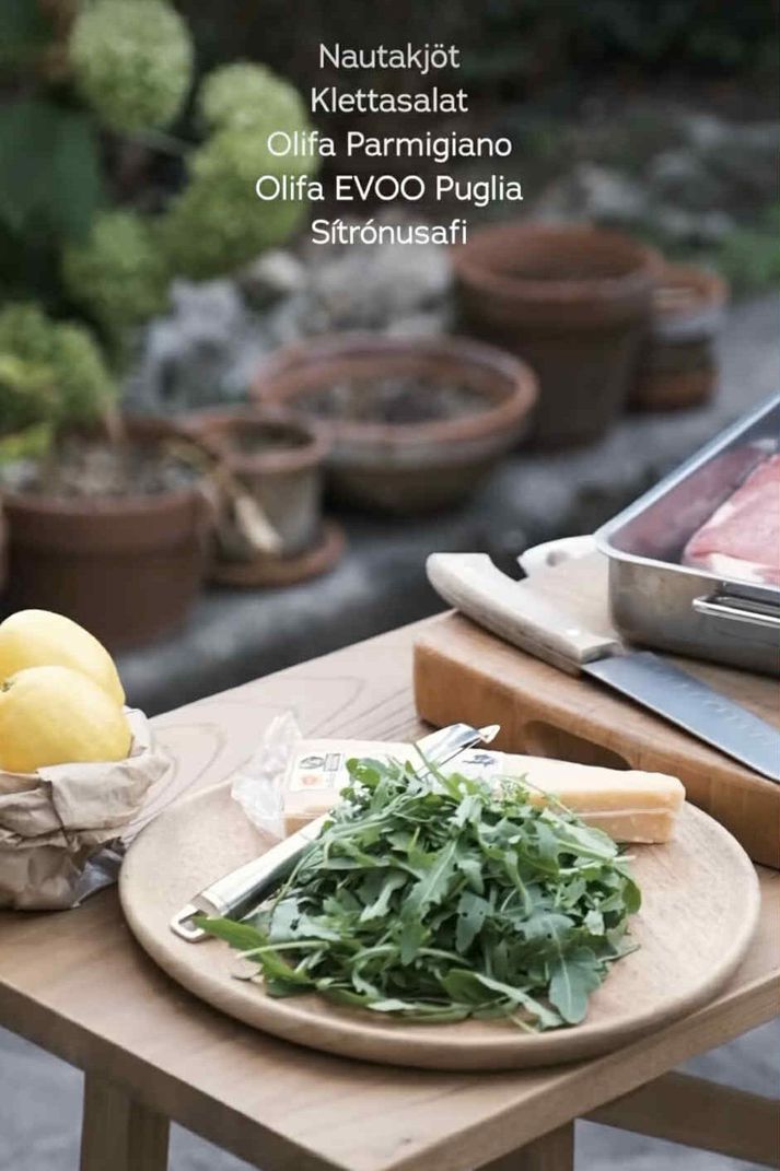 Rétturinn samanstendur af safaríku, grilluðu nautakjöti, fersku klettasalati, nýkreistri sítrónu og parmesanosti, toppaður með góðri ólífuolíu. „Þetta er hið ómótstæðilega bragð Miðjarðarhafsins,“ segir Ása María. „Þetta er einn af þessum réttum sem mér finnst að allir ættu að kunna, því hann endurspeglar það sem ítölsk matargerð snýst um — einfaldleika, gæði og virðingu fyrir hráefnunum.“ „Tagliata ruccola e grana“ Hráefni: • Heil nautasteik 400–500gr (t.d. contre-filet, entrecôte eða ribeye)• Olifa ólífuolía fyrir háan hita, 1–2 msk (til að smyrja kjötið áður en það fer á grillið)• Olifa extra virgin ólífuolía eftir smekk• Ferskt klettasalat• Olifa Parmigiano Reggiano ostur• Sítróna og salt Aðferð: Kveiktu á grillinu og hitaðu kolin þar til þau glóa vel. Það sem skiptir mestu máli er að ristin sé vel heit til að fá fallega grillað kjöt og jafna eldun. Undirbúum kjötið: Taktu steikina úr kæli 1–2 klst áður en hún fer á grillið svo hún nái stofuhita. Þurrkaðu hana vel með eldhúspappír. Nuddaðu kjötið með hitaþolinni Olifa olíu og stráðu salti á báðar hliðar. Þetta hjálpar til við að loka yfirborðinu og kemur í veg fyrir að kjötið festist á grillinu. Grillum kjötið: Leggðu kjötið á mjög heitt grillið og grillaðu það eftir þykkt og tegund. Ekki hreyfa við kjötinu meðan það grillast. Leyfðu gylltu grillförunum að myndast í rólegheitunum en það er merki um hið svokallaða Maillard-viðbragð sem við viljum fá á kjötið. Hvílum kjötið: Þegar kjötið er tilbúið, leggðu það á disk eða bretti með álpappír og leyfðu því að hvíla í 2–3 mínútur. Þannig dreifist safinn aftur um kjötið og það verður mjúkt þegar við skerum það. Skerum kjötið og berum það fram:Skerðu kjötið þvert á trefjarnar í um 1 cm þykkar sneiðar. Raðaðu svo sneiðunum á skurðarbretti/stórt fat og dreifðu því næst yfir klettasalatinu, parmigiano ostaflögum, salti og vel af þinni uppáhalds Olifa EVOO ólífuolíu ( td IGP Puglia, Toscano eða Sikiley). Að lokum kreistu sítrónuna yfir fyrir ferskt og safaríkt “touch”. View this post on Instagram A post shared by Àsa Regins (@asaregins)