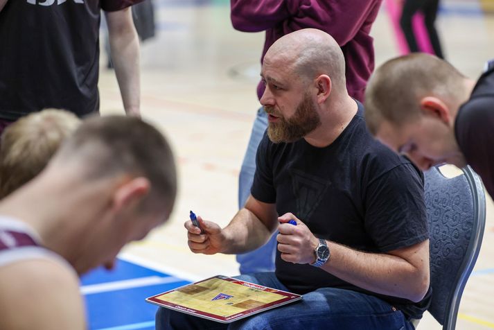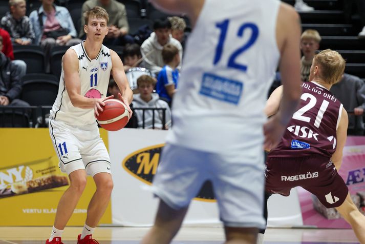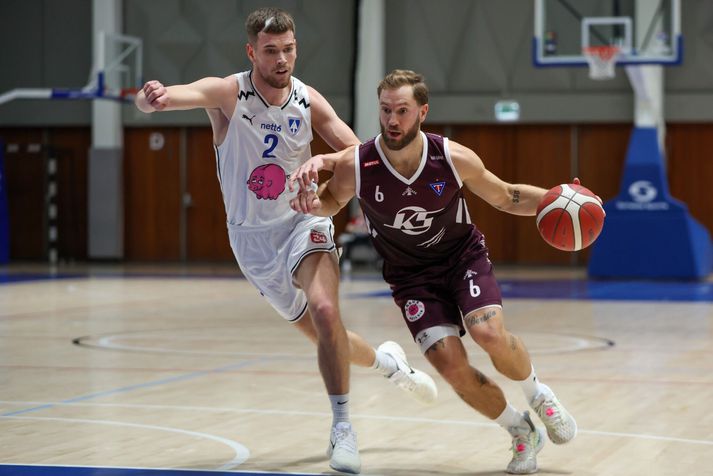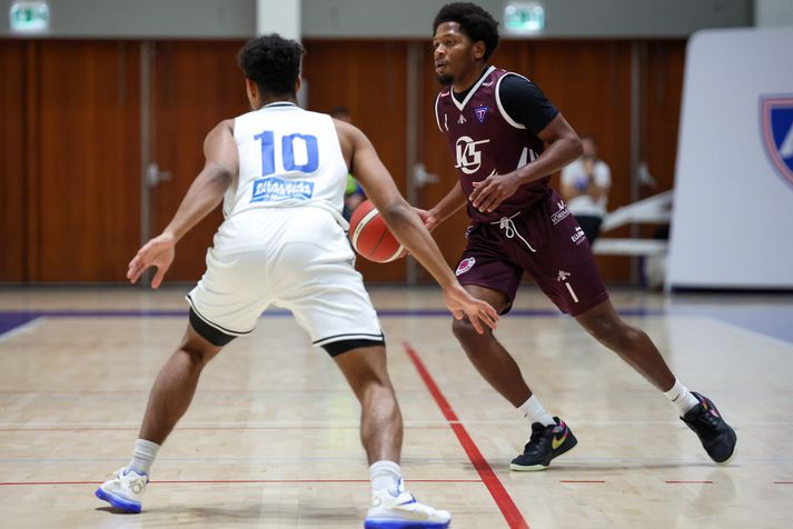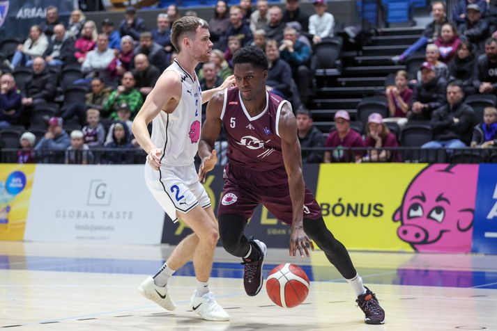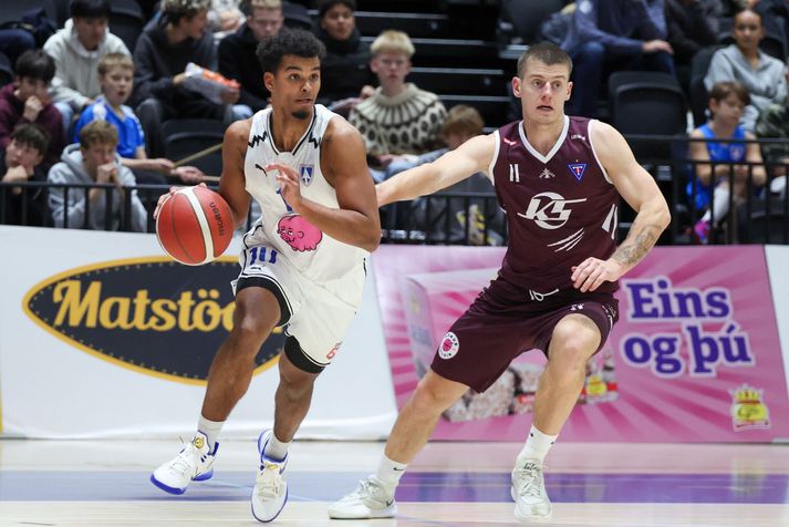 Tindastóll vann sannfærandi sigur þegar liðið sótti Ármann heim í sjöttu umferð Bónus-deildar karla í körfubolta í Laugardalshöll í kvöld. Lokatölur í leiknum urðu 77-110 Tindastóli í vil. Tindastóll var sterkari aðilinn í fyrsta leikhluta og byggði þar upp 18 stiga forskot en staðan var 15-33 gestunum í vil eftir fyrsta fjórðung. Arnar Guðjónsson, þjálfari Tindastóls rúllaði liði sínu vel og var ávallt með ferska fætur inni á vellinum. Dedtick Basile sækir á Daniel Love. Vísir/Pawel Ivan Gavrilovic og Sigtryggur Arnar Björnsson hófu til að mynda leikinn á varamannabekknum en Ivan kom inn af bekknum og skoraði 17 stig í fyrri hálfleik og Sigtryggur Arnar níu stig. Það var í raun ljóst allt frá upphafi hvoru megin sigurinn myndi lenda en leikmenn Ármanns náðu nokkrum dauðakippum í seinni hálfleik. Munurinn fór minnst niður í 16 stig í þriðja leikluta. Daniel Love kemst framhjá Davis Geks. Vísir/Pawel Þá tóku gestirnir frá Sauðárkróki aftur við sér og niðurstaðn varð öruggur og þægilegur 33 stiga sigur Tindastóls sem hefur 10 stig líkt og Grindavík á toppi deildarinnar. Steinar Kaldal, þjálfari Ármanns, fer yfir málin með leikmönnum sínum. Vísir/Pawel Steinar Kaldal: Vantaði sjálfstraust í aðgerðir okkar „Við mættum mjög flatir inn í þennan leik og það vantaði allt sjálfstraust í það sem við vorum að gera í sóknarleiknum. Við vorum að koma okkur í góð skotfæri en það vantaði alla trú í skotin hjá okkur,“ sagði Steinar Kaldal, þjálfari Ármanns, að leik loknum. „Þeir náðu fljótt góðu forskoti sem þeir létu aldrei af hendi. Við breyttum aðeins um varnarafbrigði í seinni hálfleik og það gekk aðeins betur upp. Við náðum að minnka muninn aðeins en það var ekki nóg,“ sagði Steinar enn fremur. „Það voru nokkrir leikmenn ólíkir sjálfum sér og eins og ég sagði áðan þá náðum við ekki að klára góðar sóknir okkar með almennilegum skotum,“ sagði hann. „Mér fannst þetta í fyrsta skipti þar sem ég tók eftir því að sjálfstraustið væri ekki nógu gott og við vorum litlir í okkur. Nú þurfum við að finna aftur trúna og snúa bökum saman fyrir næsta leik,“ sagði Steinar um framhaldið. Arnar Guðjónsson: Mér fannst þetta hundleiðinlegur leikur „Ef ég á að segja alveg eins og er þá fannst mér þetta alveg hundleiðinlegur leikur. Við unnum hann bara af því að við erum með betri leikmenn. Það vantaði allan strúktúr og frammistaðan hjá okkur var alls ekki nógu góð,“ sagði Arnar Guðjónsson, þjálfari Tindastóls, með óbragð í munninum þrátt fyrir sigurinn. „Þeir hittu illa og það bjargaði því að þeir næðu ekki að nálgast okkur meira en þeir gerðu. Það var ekki góð frammistaða okkar sem skilaði þessum sigri. Heldur bara það að einstaklingsgæðin okkar eru meiri,“ sagði Arnar þar að auki. „Þetta endaði bara í einhverjum pick up bolta sem er ekki mér að skapi. Það var enginn agi og framkvæmdin á því sem við ætluðum að gera var bara heilt yfir sloppy. Við þurfum að gera töluvert betur í næsta leik ef vel á að fara,“ sagði hann. „Við gerðum nokkrar tilraunir á báðum endum vallarins í þessum leik og það tókst ágætlega. Við þurfum hins vegar að drilla það aðeins betur á æfingum og skerpa á nokkrum hlutum. Svona spilamennska mun ekki skila neinu í komandi leikjum,“ sagði Arnar um næstu verkefni Stólanna. Arnar Guðjónsson var ekki sáttur við lærisveina sína. Vísir/Pawel Atvik leiksins Huggulegt alley-oop troðsla Dedrick Basile og Taiwo Badmus gladdi augað mest í þessum leik. Þá sýndi Daniel Love líka skemmtileg tilþrif þegar hann tróð með stæl. Taiwo Badmus tróð með tilþrifum eftir sendingu frá Dedrick Basile. Vísir/Pawel Stjörnur og skúrkar Jöfn og góð frammistaða skilaði þessum sigri hjá Tindastóli en Ivan Gavrilovic og Sigtryggur Arnar Björnsson voru stigahæstir en Ivan setti niður 23 stig og Sigtryggur Arnaron lagðu 22 stig í púkkinn. Líkt og áður var Bragi Guðmundsson fremstur á meðal jafningja í liði Ármanns en hann skoraði 24 stig í þessum leik og var stigahæstur á vellinum. Arnaldur Grímsson, Daniel Love og Marek Dolezaj áttu einnig góðar rispur. Bragi Guðmundsson og Sigtryggur Arnar BJörnsson háðu margar rimmur í leiknum. Vísir/Pawel Dómarar leiksins Dómarar leiksins, þeir Jóhannes Páll Friðriksson, Jakob Árni Ísleifsson og Guðmundur Ragnar Björnsson höfðu góð tök á þessum leik og fá sjö í einkunn fyrir vel unnin störf sín. Dómaratríóið fékk góða einkunn í kladdann. Vísir/Pawel Stemming og umgjörð Það var fínasta stemming í Laugardalshöllinni i kvöld og sjálfboðaliðar Ármanns boðnir og búnir til þess að hafa umgjörðina eins og best verður á kosið fyrir alla þá sem koma að leiknum. Marek Dolezaj setti niður þrjú af fjórum þriggja stiga skotum sínum. Vísir/Pawel