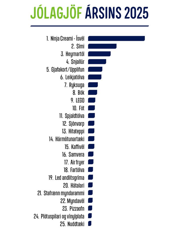 Jólagjöf ársins 2025 veltir sigurvegara síðustu tveggja ára úr sessi ELKO 13. nóvember 2025 08:03 Líkt og fyrri ár er markmiðið með könnuninni að grafast fyrir um jólagjöf ársins og leita um leið skemmtilegra upplýsinga um hefðir og jólahald landsmanna. Niðurstaða um jólagjöf ársins fékkst með nokkrum yfirburðum að þessu sinni í árvissri jólakönnun ELKO. Ninja Creami ísvélin hlaut afgerandi kosningu með 24% atkvæða og tekur við af snjallsímum sem verið hafa á toppi listans tvö ár í röð. Tæplega fjögur þúsund svör bárust í könnuninni sem send var á póstlista ELKO. Líkt og fyrri ár er markmiðið með könnuninni að grafast fyrir um jólagjöf ársins og leita um leið skemmtilegra upplýsinga um hefðir og jólahald landsmanna. „Á eftir ísvélinni koma símar, heyrnartól og snjallúr og svo komast LED andlitsgrímur á topp tuttugu listann í ár, en þar er um að ræða ljósameðferð sem á að stuðla að betri húð, draga úr hrukkum og jafnvel vinna á bólum,“ segir Arinbjörn Hauksson, forstöðumaður markaðssviðs ELKO. Þá sé loftsteikingarpotturinn (air fryer) enn á óskalista fólks þrátt fyrir að vera til á um 56% heimila. 21% sagði ýmist að loftsteikingarpottur væri á óskalistanum eða að kominn væri tími á nýjan. LEGO sem er nýjung í vöruúrvali ELKO er í 9. sæti yfir jólagjöf ársins en tæplega 60% svarenda segjast munu gefa að minnsta kosti eina gjöf frá vörumerkinu LEGO í ár. Fullorðnir fá í skóinn Við spyrjum líka alltaf um margvíslegar hliðar jólahaldsins. 42% hefja jólagjafainnkaupin í nóvember og gætir þar líklega áhrifa af afsláttardögum í mánuðinum. Svo segjast um 12% með augun opin og kaupa jólagjafir allan ársins hring. Arinbjörn Hauksson, forstöðumaður markaðssviðs ELKO segir niðurstöðu könnunarinnar í ár hafa verið afgerandi. Um 20% fullorðinna segjast fá í skóinn á aðfangadag og jafn margir segja það koma í ljós og því um skemmtilega jólahefð sem er að myndast hjá mörgum. 70% setja upp gervitré fyrir jólin og rúmlega 20% lifandi tré. Einungis um 7% setja ekki upp jólatré. Tæpur helmingur gefur tíu gjafir eða fleiri og rúmur fimmtungur áætlar að verja 100 til 150 þúsund krónum í gjafirnar. Um 26% segjast munu verja yfir 150 þúsund krónum og um 5% landsmanna segjast munu verja jólunum erlendis í ár. John McClane í fimmta sæti Í ljós kom líka að Home Aloneer vinsælasta jólamyndin með um 26% atkvæða. Þar á eftir koma rómantíska jólagamanmyndin Holiday með 15% og svo Christmas Vacation með 13% en niðurstaðan er unnin út frá opinni spurningu. Athygli vekur að Die Hard situr í 5. sæti listans og ævintýramyndirnar byggðar á Hringadróttinssögu eru meðal topp tíu, en þær voru allar frumsýndar á milli jóla og nýárs og ljóst að áhorf á þær hefur sterka tengingu við jólatímabilið. Styrkja Ljósið Í tengslum við könnunina hefur fólki líka boðist að tilnefna málefni sem stendur því nærri til styrkúthlutunar. Að þessu sinni hlýtur Ljósið styrk upp á eina milljón króna úr styrktarsjóði ELKO í nóvember. Jól Jólagjafir fyrirtækja Mest lesið Alvotech tekur dýfu eftir uppgjör Viðskipti innlent Sendafélagið kaupir 4G og 5G dreifikerfi Sýnar og Nova Viðskipti innlent Búi sig undir að berja í borðið Viðskipti innlent Jólagjöf ársins 2025 veltir sigurvegara síðustu tveggja ára úr sessi Samstarf Skýrt að verndarráðstafanir þurfi að ná yfir alla utan tollabandalags Viðskipti innlent Klístruð gólf og mygla meðal þess sem felldi Alvotech Viðskipti innlent Ráðinn framkvæmdastjóri upplýsingatækni hjá Styrkás Viðskipti innlent Fæstir hlynntir veru Rúv á auglýsingamarkaði Viðskipti innlent Erfiður vetur framundan en íslensk fyrirtæki ráði við áskoranirnar Framúrskarandi fyrirtæki Auknar tekjur en nýta sér 12,7 milljarða veltufjármögnun Viðskipti innlent Fleiri fréttir Einar Már, Sunna Dís og Sigrún Eldjárn lesa upp í kvöld Jólagjöf ársins 2025 veltir sigurvegara síðustu tveggja ára úr sessi Ertu þremur mínútum frá draumastarfinu? Kerfi sem virka eins og lungu landeldisstöðva Bauhaus styrkir góð málefni fyrir jólin „Ég fæ hroll þegar fólk segist hafa notað sama lykilorðið í 20 ár“ Forvarnarverðlaun VÍS: „Öryggi er ekki samkeppnismál“ ÍMARk rýnir í markaðsheim framtíðarinnar Tengiltvinnari fyrir taugatrekkta Peltor og Dynjandi saman í 60 ár Framlína heilbrigðisþjónustunnar kallar eftir liðsauka Persónuleg reynsla varð að atvinnurekstri Rafmagnað fyrsta stefnumót við Nissan Ariya Í stuði í 130 ár: Virkjanir sem leystu af dísilvélar og knúðu síldarbæ KLAK health býður sprotafyrirtæki í heilsutækni velkomin Hreinsun þakrenna fyrirbyggir skemmdir Sjá meira