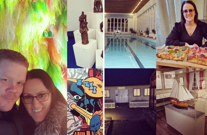„Hæ ástin mín, Nýtt í hverjum mánuði á fimmtudaginn, ertu laus?“ Rakel Sveinsdóttir skrifar 28. desember 2025 08:02 Hjónin Sigurborg Geirdal kennarai og Valdimar Víðisson bæjarstjóri hafa staðið við áramótaheitið sitt hvern einasta mánuð í tíu ár; Geri aðrir betur! Nýtt í hverjum mánuði heitir verkefnið og segjast hjónin grjóthörð að halda áfram. Vísir/Vilhelm Hann er bæjarstjóri í Hafnarfirði og hún er kennari í Álftanesskóla. Saman eru þau hjónin Valdimar Víðisson og Sigurborg Geirdal, sem nýverið stofnuðu Instagramsíðuna Nýtt í hverjum mánuði á Instagram. Sem ólíkt svo mörgum öðrum pörum sem hafa reynt þetta áður: Hafa haldið úti áramótaheiti í tíu ár um að gera alltaf eitthvað nýtt í hverjum mánuði sem par! Enda eru þau vægast sagt stolt af árangrinum, ætla að halda ótrauð áfram og segja þetta líka svo skemmtilegt verkefni. „Ég hlakka svakalega til að vita hvert desember Nýtt verður,“ segir Sigurborg þegar viðtalið er tekið. En Valdimar gefur auðvitað ekkert upp; er íbygginn á svip. „Við bjuggum til leikreglur. Eigum hvort um sig eitt Vídó sem þýðir að við megum í eitt skipti segja Nei við því sem á að gera. Valdimar hefur nýtt sér sitt. Ég á mitt eftir,“ segir Sigurborg og hlær. Enda oft hlegið í samtalinu. Varla annað hægt því sagan af áramótaheitinu góða er einfaldlega svo skemmtileg. Við skulum nýta okkur góðu ráðin og innblásturinn frá Valdimar og Sigurborgu. Nýtt í hverjum mánuði gengur þannig fyrir sig að Valdimar og Sigurborg skipuleggja stefnumótin á víxl hvern mánuð, upplýsa aðeins um fatnað og klukkan hvað stefnumótið verður og síðan er haldið af stað. Stemningin á svölunum Sko…. Það er auðvitað best að byrja á því að kynnast hjónunum aðeins með því að fá að heyra aðeins meira um þau og hjónabandið. Parsamband Valdimars og Sigurborgar hófst sumarið 2011 en þá störfuðu þau bæði í Öldutúnsskóla. Hann sem aðstoðarskólastjóri en hún sem kennari. „Það var ekki að ræða það að ég velti Valdimar fyrir mér sem mannkosti; hann yngri en ég, yfirmaður minn og með lítið barn; Nei takk!“ segir Sigurborg og skellihlær. Með sögunni fylgir hins vegar að Sigurborg hafi verið opin fyrir því að kynna Valdimar fyrir vinkonum sínum. Týpískt! Sjálfur segist bæjarstjórinn almennt vera kallaður AA af Hafnfirðingum; aðfluttur andskoti. Enda fæddur í Bolungavík árið 1978, ólst þar upp til 16 ára þegar hann flutti norður í land þaðan sem hann kláraði menntaskóla og háskólanám á Akureyri. Aðeins 25 ára varð hann skólastjóri á Grenivík en í Hafnafjörðinn flutti hann árið 2008. „Ég verð 18 ára Hafnfirðingur á næsta ári,“ segir Valdimar. Tal sem Hafnfirðingar þekkja því aðeins þeir sem þar eru fæddir og uppaldir geta víst fyrir alvöru kallað sig alvöru Hafnfirðing eða Gaflara. „Ég hef reyndar stundum heyrt að ég hafi verið flutt inn til kynbóta,“ segir Sigurborg, fædd árið 1970 í Kópavogi en flutti í Hafnarfjörðinn árið 1991. Telst sumsé einnig til AA hópsins. Sigurborg viðurkennir að hafa verið búin að steingleyma áramótaheitinu þegar Valdimar sendi henni skilaboð, tilkynnti að Nýtt í hverjum mánuði yrði á fimmtudeginum og var að athuga hvort hún væri laus klukkan 17. Síðan eru liðin tíu ár og enginn mánuður fallið úr.Vísir/Vilhelm Hjónin höfðu bæði verið í langtímasamböndum áður. En til viðbótar við átta ára aldursmismun, var það ólíkt hjá þeim skötuhjúum að dætur Sigurborgar voru mun eldri en sonur Valdimars því Sigurborg varð mamma aðeins 16 ára. Þetta þýðir að í dag eru dætur Sigurborgar 38 ára og 32 ára en sonur Valdimars er 18 ára. Að mati Sigurborgar var þetta því ekki parsamband sem hún horfði nokkuð til en viti menn; ástin spyr nú sjaldnast um aldur eða önnur praktísk atriði, enda mörg ár liðin síðan og parsambandið nú orðið fjórtán ára. Um áramótin 2015/2016 stóðu Valdimar og Sigurborg á svölunum sínum í Hafnarfirði og ræddu áramótaheitin. Svona eins og við svo oft gerum á þeim tíma. Svo mikil stemning einhvern veginn; að kveðja það gamla, fagna því nýja. Hverjir trúa því ekki eitt augnablik þá, að einhver áramótaheit verða strengd og haldin? Í tilfelli Valdimars og Sigurborgar, kemur Valdimar með þá hugmynd að áramótaheiti að frá og með janúar 2016 muni þau gera eitthvað nýtt í hverjum mánuði. Sem Sigurborgu fannst frábær hugmynd. Engin spurning! Hún var sko alveg til. „Síðan kom janúar og ég einfaldlega gleymdi þessu,“ segir Sigurborg og hlær. Valdimar og Sigurborg hafa gert alls kyns á þessum tíu árum; stundum kosta stefnumótin ekkert og stundum kosta þau eitthvað, öll séu þau skemmtileg og eftirminnileg. Meira að segja sýningin hér um árið sem þau eru enn að reyna að átta sig á um hvað snerist.... Hugmyndir og gaman Þegar hugmyndin að áramótaheitinu fæddist á svölunum, var umræðan um heitin fyrir nýtt ár nokkuð dæmigerð. Þar sem skötuhjúin ræddu áramótaheit eins og að hreyfa sig meira, lesa meira, ferðast meira. Þegar á leið janúar, sendir Valdimar mér skilaboð eitt sinn og segir: Hæ ástin mín, Nýtt í hverjum mánuði á fimmtudaginn, ertu laus?“ Sigurborg viðurkennir að hafa orðið hálf hvumsa. Búin að gleyma áramótaheitinu og þarna að átta sig á því að hennar ektamaður væri hvorki búinn að gleyma því né nokkuð af baki dottinn. Auðvitað svaraði hún því Já! Og það er hin almenna regla; Að segja Já án þess að vita hvað í vændum er. Taka frá tíma fyrir stefnumótið ef hægt er; skipuleggja það með fyrirvara hvenær stefnumótið verður svo enginn mánuður fari forgörðum. Útfærslan er því þannig að anna