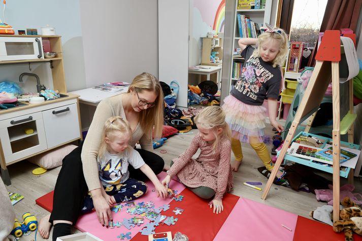 Börnin verði heima einn og hálfan dag í viku Lovísa Arnardóttir skrifar 7. janúar 2026 13:01 Ólöf er heima í dag með þrjár stelpur sem ekki geta farið í leikskólann vegna manneklu. Skipulögð fáliðun hefur verið á leikskólanum frá því vorið 2024. Vísir/Vilhelm Ólöf Eiríksdóttir, formaður foreldraráðs leikskólans Funaborgar, segir ólíðandi að foreldrar þurfi að hafa leikskólabörn sín heima í einn og hálfan dag í hverri viku. Hún gagnrýnir skipulagða fáliðun leikskólans og kallar eftir betri aðgerðum af hálfu borgarinnar. Leikskólinn Funaborg er þriggja deilda leikskóli þar sem 58 börn dvelja að jafnaði. Deildirnar heita Fagrabrekka, Helgustekkur og Guddumói. Leikskólinn starfar í tveimur húsum en þar á meðal er nýtt skógarhús sem tekið var í notkun í janúar 2022. Á Funaborg starfa um 20 manns samkvæmt heimasíðu borgarinnar. Til stendur að breyta leikskólanum í sjö deilda leikskóla og flytja þá starfsemina í Húsaskóla. „Ég er með tvö börn á leikskólanum og er þess aðnjótandi að maðurinn minn vinnur vaktavinnu þannig við höfum meira svigrúm kannski heldur en margur,“ segir Ólöf. Sem formaður foreldraráðs vilji hún þó vekja athygli á málinu fyrir hönd allra foreldra. „Það eru auðvitað einstæðir foreldrar og foreldrar sem eru verr settir heldur en við sem eru bara í miklu veseni,“ segir hún í samtali við fréttastofu. Ólöf með þremur börnum heima í barnagæslunni á meðan börnin verða að vera heima. Vísir/Vilhelm Hálfur dagur sem verður einn og hálfur „Þetta byrjaði sem hálfur dagur vorið 2024 og því lauk þegar að sumarstarfsfólk kom inn. Svo hófst þetta aftur í mars 2025. Alveg út maí og aftur tókst þeim að ljúka við þessa fáliðun. Og þá var það heill dagur,“ segir Ólöf og að þegar sumarstarfsfólk hóf svo störf síðasta sumar hafi skipulagðri fáliðun lokið. Þetta haustið hafi leikskólinn verið fullmannaður í fyrsta sinn í langan tíma en staðan fljótlega breyst. „Það er full mönnun á leikskólanum, í fyrsta skipti bara í langan tíma, og við fögnum því auðvitað, en svo bara hrynur starfsfólk út einhvern veginn. Sumir hætta og sumir eru í langtímaveikindum. Það vantar bara gríðarlega marga starfsmenn á leikskólann þannig að núna erum við að horfa fram á það að við séum búin að vera með heilan dag í fáliðun og frá og með næstu viku, þá verður þetta einn og hálfur dagur í viku,“ segir Ólöf. Hún segir starfsfólk reyna að vera sveigjanlegt. „Þær eru auðvitað að gera sitt allra, allra besta … þú átt annaðhvort mánudag, þriðjudaginn eða miðvikudag alltaf fast og svo fara öll börnin heim í hádeginu á föstudögum.“ Hún segir starfsfólk reyna að vera liðlegt þegar eitthvað kemur upp á og fólk hafi getað breytt um dag með stuttum fyrirvara. Ólöf segir foreldra og foreldraráð búna að hafa samband við borgina en þau hafi ekki fengið nein svör. Í gær hafi foreldraráð því hvatt alla foreldra til að hafa samband við borgina. „Því fleiri, því betra, af því að þetta er orðið, sko, nú er fólk að missa út 30 prósent af vistun. Það er rosalega mikið. Það er enginn vinnuveitandi sem þætti sér bara við það að missa 30 prósent eða 15 prósent starfskraft ef að fólk nær að skipta þessu 50/50.“ Heima með fjögur börn Ólöf segir eiginmann sinn til dæmis vinna næturvaktir aðra hvora viku og þá vikuna sjái hún alfarið um heimilið. Til að leysa vandann skiptist foreldrar á að passa börnin. „Við erum með annað foreldrapar sem við skiptumst á að taka krakkana hjá hvert öðru því við erum bara að láta dæmi ganga upp.“ Þannig eruð þið með barnagæslu heima? „Maðurinn minn er heima núna með fjögur börn.“ Ólöf segir leikskólastjórana hafa auglýst linnulaust eftir starfsfólki en það hafi ekki skilað neinu. „Þær eru búnar að fullnýta öll þau verkfæri sem að þær hafa eins vel og þær geta, vegna þess að þær eru náttúrulega mikið inni á deildum núna. Leikskólastjóri, aðstoðarleikskólastjóri, er bara að hlaupa í skarðið.“ Faglegt starf skert og leikskólastjórar inni á deildum Hún segir þetta sorglega stöðu og faglegt starf leikskólans skerðist við þessa stöðu. „Funaborg er virkilega góður leikskóli með frábært faglegt starf og börnum líður ofboðslega vel þarna. Þetta er svo ósanngjarnt að fólk sem vinnur þarna er ekki að geta sinnt sínu, sérkennslustjórar til dæmis. Það er verið að skerða starfið af því það fæst ekki starfsfólk í almennar stöður. Þeir eru að fara úr fullri mönnun niður í næstum því hálfa mönnun á innan við einni önn.“ Hún segir yfirvofandi framkvæmdir einnig hafa haft áhrif en stefnt er á að breyta leikskólanum úr þriggja deilda leikskóla í sjö deilda leikskóla. Ólöf segir að samkvæmt plani hafi átt að hefja starfsemi síðasta haust í Húsaskóla en ekkert hafi orðið af því og ekki liggi fyrir hvenær verði af því. Þetta hafi samt sem áður orðið til þess að bæði hafi starfsfólk hætt og fólk flutt börn sín á aðra leikskóla. Á sama tíma og það séu yfirvofandi framkvæmdir hafi verið tekin inn ný börn sem svo fari beint í fáliðun. Ólöf segir það í samræmi við yfirlýsta stefnu borgarinnar, en segir þessa stefnu gallaða. „Það er náttúrulega líka það sem er pínu ergjandi, að nýja stefnan hjá Reykjavíkurborg er þannig að öll börn sem fá úthlutað plássi komast inn og fara í aðlögun,“ segir hún og að áður fyrr hafi það verið þannig að börnin biðu þar til búið var að manna. Ólöf segir að einhverju leyti sé það sanngjarnara en þessi staða sé orðin of langdregin á leikskólanum. „Ég get alveg skilið að þ
