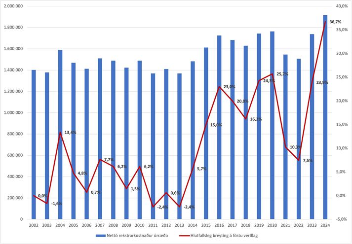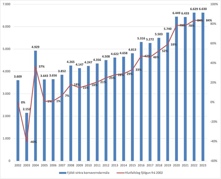 Mikið úrræðaleysi hefur verið í málefnum barna með fjölþættan vanda. Afleiðingarnar hafa ekki látið á sér standa. Við höfum séð á eftir efnilegum unglingum, fjölskyldur hafa sundrast, foreldrar orðið óvinnufærir, alvarlegar uppákomur hafa orðið á meðferðarheimilum, langir biðlistar eru eftir greiningum og þjónustu og þannig mætti áfram telja. Hér verður reynt að draga fram nokkur atriði sem geta skýrt hvers vegna þróunin hefur orðið með þessum hætti sérstaklega í ljósi þess að mikil samstaða virðist ríkja bæði meðal stjórnmálamanna og samfélagsins alls um að þjónusta við börn og sérstaklega þau og fjölskyldur þeirra sem eiga við flókin vanda að etja, eigi að vera í forgangi. Einnig viljum við vekja athygli á Farsældartúni en hugmyndir hafa verið uppi um að byggja þar upp fjölbreytta þjónustu fyrir börn og fjölskyldur. Fjöldi barna og virkra barnaverndarmála 2002-2023 Árið 2002 voru 78.185 börn 17 ára og yngri á Íslandi. Fram til ársins 2016 fjölgað börnum um 1,2% en frá því ári fjölgar börnum umtalsvert og hafði fjölgað um 7,6% fram til ársins 2023, eða um 5.929 börn (mynd 1). Mynd 1. Fjöldi barna 0-17 ára á Íslandi 2002-2025 (v-y ás) og hlutfallsleg fjölgun milli ára (h – y ás). Ef fjöldi virkra barnaverndarmála eru skoðuð sama tímabil voru þau 3.609 árið 2002, en voru orðin 6.630 árið 2023 sem er fjölgun um 84%. Nokkur stígandi var í fjölguninni á milli ára fram til ársins 2014 þegar fjöldi barnaverndarmála var 4.658, sem er fjölgun um 29% frá árinu 2002. Frá árinu 2014 fram til ársins 2023, eða á níu ára tímabili, fjölgaði virkum barnaverndarmálum um 42%. Ekki liggja fyrir upplýsingar um fjölda barnaverndarmála vegna áranna 2024 og 2025. Mynd 2. Fjöldi virkra barnaverndarmála (v-y ás) 2002-2023 ásamt hlutfallslegri fjölgun frá árinu 2023 (h-y ás). Ef litið til tímabilsins 2002-2023 kemur því í ljós að á sama tíma og börnum fjölgar um 7,6% fjölgar barnaverndarmálum um 84%. Þannig var fjöldi virkra barnaverndarmála á móti heildarfjölda barna 4,6% árið 2002, en var orðið 7,9% árið 2023. Af þeirri staðreynd má því draga þá ályktun að fjárþörf þess kerfis sem ætlað er að þjónusta þau börn og fjölskyldur sem eru í viðkæmustu stöðunni ætti að hafa aukist verulega ef ætlunin er að halda þjónustustigi a.m.k. óbreyttu. Ábyrgð ríkisins samkvæmt barnaverndarlögum 79. gr. barnaverndarlaga nr. 80/2002 kveður á um heimili og stofnanir sem ríkið skal sjá um að séu tiltæk vegna barna með alvarlega hegðunarerfiðleika, vegna meintra afbrota og vímuefnaneyslu. Í greininni segir meðal annars: [Ráðuneytið]1) ber ábyrgð á að tiltæk séu heimili og stofnanir til að: a. veita börnum móttöku í bráðatilvikum til að tryggja öryggi þeirra vegna meintra afbrota eða alvarlegra hegðunar erfiðleika, b. greina vanda barna sem talin eru þurfa sérhæfða meðferð, c. veita börnum sérhæfða meðferð vegna alvarlegra hegðunarerfiðleika, vímuefnaneyslu og meintra afbrota. [Barna- og fjölskyldustofa],2) í umboði [ráðuneytisins],1) annast uppbyggingu og rekstur heimila og stofnana skv. 1. mgr. Stofan getur falið öðrum rekstur þeirra á grundvelli þjónustusamnings. [Heimili og stofnanir skv. 1. mgr. lúta faglegri og fjárhagslegri yfirstjórn [Barna- og fjölskyldustofu]2) og getur hún mælt fyrir um tiltekna sérhæfingu þeirra.]3) [Barna- og fjölskyldustofa]2) veitir þeim sem reka heimili og stofnanir fræðslu, leiðbeiningar og almennan faglegan stuðning. Af þessu má ljóst vera að verulegar skyldur hvíla á Barna- og fjölskyldustofu varðandi uppbyggingu og rekstur heimila og stofnanna sem ætlað er að mæta börnum og fjölskyldum sem meðal annars glíma við fjölþættan vanda. Uppbygging og rekstur vistunar- og meðferðarúrræða á vegum BOFS 2002-2024 Ætla mætti því að nokkur fylgni sé á milli fjölgunar barnaverndarmála og umsvifa hjá Barna- og fjölskyldustofu og þá sérstaklega varðandi úrræði stofnunarinnar, sbr. 79. gr. barnaverndarlaga nr. 80/2002. Á tímabilinu 2022-2024 var rúmum 180 m.kr. að meðaltali varið árlega í stofnkostnað vegna uppbyggingar eða viðhalds fasteigna af útgjöldum Barna- og fjölskyldustofu á föstu verðlagi ársins 2024. Eins og skýrt kemur fram á mynd 3 fóru óverulegir fjármunir í stofnkostnað frá árinu 2005-2021. Hins vegar eru fjárhæðirnar hvert ár að þeirri upphæð að líklega er frekar um að ræða viðhaldsfé á fasteignum frekar en byggingu nýrra heimila enda má áætla að slíkar fjárfestingar séu að lágmarki á bilinu 300-500 m.kr. Mynd 3. Stofnkostnaður vegna uppbyggingar eða viðhalds fasteigna af útgjöldum Barna- og fjölskyldustofu (og forvera) 2002-2024. Árið 2024 var rekstrarkostnaðar vegna úrræða Barna- og fjölskyldustofu um 1,9 ma.kr. og hafði þá hækkað á föstu verðlagi úr 1,4 ma.kr. árið 2002 eða um 36% á tímabilinu. Umtalsverðar sveiflur eru í útgjöldunum frá árinu 2002 fram til ársins 2013 en athygli vekur að á því ári voru gjöldin lægri á föstu verðlagi en þau voru árið 2002. Athyglisvert er einnig að árin 2021og 2022 voru gjöldin lægri á föstu verðlagi en þau voru árið 2004 (mynd 4). Rétt er að fram komi að þegar rætt er um úrræði hér er um að ræða vistunar- og meðferðarúrræði. Mynd 4. Þróun á rekstrarkostnaði (þús. kr.) vegna úrræða Barna- og fjölskyldustofu á verðlagi ársins 2024. Til samanburðar er rétt að nefna að ársmeðaltal launavísitölu hækkaði um 344% á tímabilinu 2002-2024, en vísitala neysluverðs um 182%. Hér er því um að ræða margfalda raunlækkun fjármuna sem fara í rekstur vistunar- og meðferðarúrræða á vegum Barna- og fjölskyldustofu. Rétt er að taka fram að þegar útgjöld eru bor
