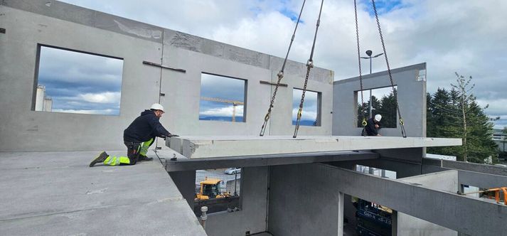 Forsteyptar húseiningar eru framleiddar innanhúss í verksmiðju fyrirtækisins við stöðugt gæðaeftirlit. „Í framleiðslunni er einungis notuð hágæða steinsteypa og eru einingarnar að stórum hluta sér smíðaðar fyrir hvert verkefni,“ segir Steingrímur Már Jónsson, framkvæmdastjóri einingaframleiðslu hjá BM Vallá. „Þar sem því verður við komið er þó byggt á stöðluðum lausnum til að auka hagkvæmni og skilvirkni.“ Húseiningarnar eru afhentar tilbúnar á byggingastað og geta verið allt frá út- og innveggjum til loftaplatna, stiga, bita og sökkla. „Þessi nálgun breytir hefðbundnu byggingarferli verulega, þar sem stór hluti framkvæmdarinnar fer fram áður en vinna hefst á lóðinni sjálfri.“ Steingrímur Már Jónsson er framkvæmdastjóri einingaframleiðslu hjá BM Vallá. Að sögn Steingríms næst fram margvíslegur ávinningur í byggingarferlinu með því að byggja með forsteyptum húseiningum. „Stór hluti hönnunar og þróunar verkefnisins fer fram hjá BM Vallá í nánu samstarfi við verkkaupa. Það tryggir betri yfirsýn, aukið framkvæmdaröryggi og hagkvæmari lausnir frá upphafi verksins. Þessi aðferð leiðir jafnframt til mun styttri byggingartíma þar sem húsið er oft sett upp á örfáum dögum í stað margra vikna.“ Gæði eru tryggð þar sem framleiðsla húseininganna fer fram við bestu aðstæður í verksmiðju, óháð veðri og undir stöðugu gæðaeftirliti. „Allar einingar eru unnar eftir ítarlegum framleiðsluteikningum sem tryggir mikla nákvæmni í samsetningu. Að auki stuðlar notkun forsteyptra eininga að sjálfbærari framkvæmd, þar sem minni byggingarúrgangur fellur til og efni nýtast betur. Í stuttu máli má því segja að forsteyptar húseiningar stytti byggingartíma, lækki kostnað, tryggi gæði og geri byggingarferlið skýrara og einfaldara fyrir alla aðila.“ Reynslumikill framleiðandi með íslenskar aðstæður í huga BM Vallá hefur framleitt húseiningar frá árinu 1984 og sameinaði alla húseiningaframleiðslu sína á einn stað eftir kaup á Smellinn húseiningum í lok árs 2007. Einingarnar eru sérhannaðar fyrir íslenskar aðstæður og settar upp undir ströngu gæðaeftirliti. „Fyrirtækið býr yfir öflugri og tæknilega þróaðri framleiðslugetu og hefur um árabil verið leiðandi í þróun forsteyptra einingalausna hér á landi. Starfsfólk leggur ríka áherslu á að mæta hugmyndum og þörfum viðskiptavina og njóta hönnuðir mikils frelsis við hönnun og úrfærslur byggingarinnar þar sem hægt er að fara fjölbreyttar leiðir í framleiðslunni og útliti húsa.“ Fjölbreyttir notkunarmöguleikar Kosti forsteyptra húseininga má nýta í nánast hvers kyns mannvirkjagerð, svo sem í einbýlishús, sumarbústaði, fjölbýlishús og atvinnuhúsnæði. Einnig henta lausnirnar vel í önnur mannvirki, til dæmis brýr og undirgöng. Framleiðsluferlið er gæðavottað samkvæmt ISO 9001 og húseiningarnar eru CE-vottaðar. En hvernig virkar ferlið? „Það fyrsta sem viðskiptavinur þarf að gera er að senda inn málsettar teikningar, til dæmis grunnmynd og útlitsteikningu,“ segir Steingrímur. „Í kjölfarið er sett upp ítarlegt tilboð sem tekur jafnaði um 1-3 vikur, allt eftir umfangi verkefnisins. Að samþykktu tilboði er gengið frá samningi og hönnun hefst, ef hún er hluti af samningnum. Þegar hönnun liggur endanlega fyrir hefst framleiðsla og afhending er samkvæmt samkomulagi.“ Ný nálgun í mannvirkjagerð BM Vallá vinnur markvisst að þróun vistvænni lausna og eflingu hringrásarhugsunar í mannvirkjagerð. Nýlega var reist tímabundin ný verslun og skrifstofa fyrirtækisins við Bíldshöfða 7, svokallað Hringrásarhús. „Húsið var byggt með forsteyptum húseiningum sem hannaðar voru með það í huga að hægt væri að taka þær niður og setja upp á nýjum stað þegar framtíðarstaðsetning fyrirtækisins liggur fyrir.“ Hringrásarhúsið svokallaða er ný verslun og skrifstofa fyrirtækisins sem stendur við Bíldshöfða 7. Húsið var byggt með forsteyptum húseiningum sem voru hannaðar með það í huga að hægt væri að taka þær niður og setja upp á nýjum stað síðar. Með þessari nálgun er dregið úr sóun, kolefnisspor minnkað og auðlindanýting bætt. „Verkefnið veitir jafnframt dýrmæta þekkingu og reynslu í þróun lausna sem lengja líftíma efnis og minnka byggingarúrgang til muna,“ bætir Steingrímur við. Traust byggt á áratuga reynslu Saga BM Vallár nær aftur til ársins 1946 og byggir fyrirtækið því á um 80 ára reynslu í mannvirkjagerð. Þar er lögð rík áhersla á náið og traust samstarf við viðskiptavini, hvort sem um ræðir einstaklinga sem láta drauminn um framtíðarheimili rætast eða verktaka sem takast á við stór og flókin verkefni. Hjá BM Vallá starfar samhentur hópur hönnuða og byggingartæknifræðinga með áratuga reynslu af einingahúsum og leiðbeina þér með næstu skref.