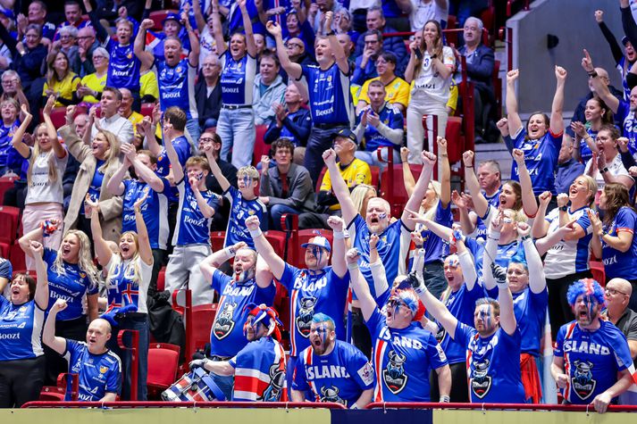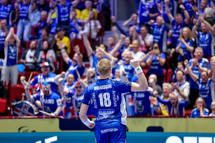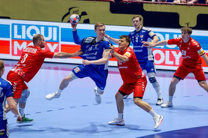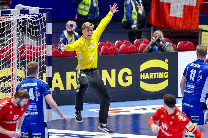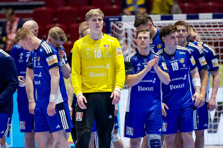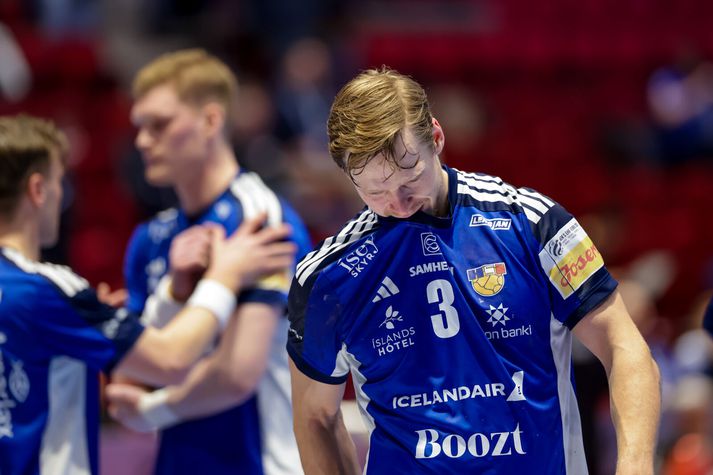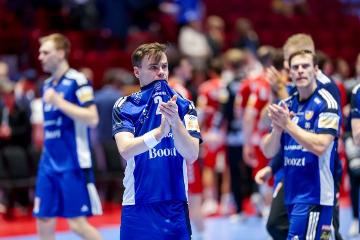 Vel tekið undir í þjóðsöng Íslands. Þjálfarateymi Íslands horfir í átt að leikmönnumVísir/Vilhelm Gísli Þorgeir keyrir í gegnum vörn SvissVísir/Vilhelm Elliði Snær á flugiVísir/Vilhelm Viktor Gisli í markinu reynir að koma vörnum við. Vísir/Vilhelm Stuðningurinn við Strákana okkar var sem áður fyrr trylltur. Íslendingar enn og aftur að taka yfir Malmö ArenaVísir/Vilhelm Elliði Snær fær stúkuna í lið með sérVísir/Vilhelm Snorri Steinn, landsliðsþjálfari Íslands trúir ekki sínum eigin augum.Vísir/Vilhelm Einbeittir og áhyggjufullir stuðningsmenn ÍslandsVísir/Vilhelm Hornamaðurinn Óðinn Þór fagnar mörkum sínum ávallt vel og innilega Vísir/Vilhelm Snorri Steinn einbeittur á hliðarlínunniVísir/Vilhelm Mikilvægt að láta ekki deigann síga og láta áfram vel í sér heyraVísir/Vilhelm Janus Daði skiljanlega svekktur í leikslok, Óðinn Þór á svo eitthvað vantalað við Ými í fjarskaVísir/Vilhelm Viktor Gisli hugsiVísir/Vilhelm Frekar lýsandi mynd á döpru eftirmiðdegiVísir/Vilhelm Svekktir Strákarnir okkar í leikslok. Örlögin ekki lengur bara í þeirra höndum þegar kemur að sæti í undanúrslitum EMVísir/Vilhelm Strákarnir þakka fólkinu í stúkunni fyrir stuðninginn. Möguleikar Íslands ekki úr sögunni en erfiður róður framundanVísir/Vilhelm