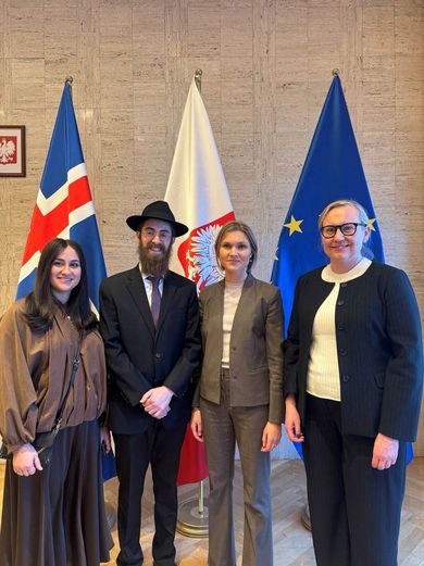 Skýrsla starfshópsins, sem Rósa Björk Brynjólfsdóttir leiddi, var til umfjöllunar í ríkisstjórn í gær, en til þessa hefur dagsins ekki verið sérstaklega minnst hér á landi með formlegum hætti. Verði að læra af sögunni Þá hélt forsætisráðuneytið móttöku í húsakynnum pólska sendiráðsins í gær, í samvinnu við pólska og þýska sendiráðsins þar sem Kristrún Frostadóttir forsætisráðherra „áréttaði meðal annars mikilvægi þess að þessarar myrku sögu sé minnst og af henni séu dregnir lærdómar til framtíðar,“ líkt og segir meðal annars í tilkynningu á vef stjórnarráðsins. Mushky Feldman, Avraham Feldman, rabbíni gyðinga á Íslandi, Kristrún Frostadóttir forsætisráðherra og Þorbjörg Sigríður Gunnlaugsdóttir dómsmálaráðherra sóttu móttöku í tilefni af minningardegi um helförina í gær.Stjórnarráðið „Þann 27. janúar 1945 voru fangar í Auschwitz-Birkenau í Póllandi, alræmdustu fangabúðum nasista, frelsaðir af sovéska hernum. Þennan dag gat umheimurinn allur séð með eigin augum hversu grimmileg voðaverk höfðu verið framin af stjórn nasista á gyðingum og öðrum minnihlutahópum í heimsstyrjöldinni síðari. Alls er talið að um 6 milljónir Gyðinga hafi týnt lífi í útrýmingarbúðum nasista. Árið 2005 lýstu Sameinuðu þjóðirnar því yfir að 27. janúar yrði alþjóðlegur minningardagur um helförina. Mörg ríki höfðu minnst frelsunarinnar með formlegum hætti fyrr. Dagsins hefur ekki verið opinberlega minnst af íslenskum stjórnvöldum, en samfélag Gyðinga á Íslandi hefur haldið daginn í heiðri í samvinnu við nokkur sendiráð í Reykjavík,“ segir meðal annars í skýrslu starfshópsins. Spornað verði gegn uppgangi hatursorðræðu Rósa Björk ræddi niðurstöðu starfshópsins í kvöldfréttum Sýnar í gær, en forsætisráðherra hyggst skipa vinnuhóp með fulltrúum ráðuneyta til að vinna úr tillögum hópsins. „Okkar tillögur þær ganga út á það að efla fræðslu um sögu helfararinnar og ekki síst aðdraganda hennar, til þess að sporna gegn uppgangi hatursorðræðu, fordóma og kynþáttafordóma í garð allra trúarhópa og minnihlutahópa, sem geta auðvitað haft hrikalegar afleiðingar eins og helförin sýnir,“ segir Rósa. Gerðar eru einnig tillögur í skýrslu starfshópsins um varðveislu og sagnfræðilega vinnu, en ein af tillögum hópsins snýr jafnframt að mögulegri breytingu á hegningarlögum. „Ein af tillögunum okkar er að íhuga að gerðar verði breytingar á hegningarlögum þar sem afneitun á helförinni verði gerð refsiverð. Uppgangur afneitunarsinna hefur verið mikill í Evrópu og við höfum séð dæmi um það hér á Íslandi líka með viðtölum í fjölmiðlum,“ segir Rósa. Tímabært að Ísland haldi minningardaginn Þá leggur hópurinn jafnframt til að forsætisráðherra biðjist afsökunar vegna helfararinnar, en lagt er til að ráðist verði í rannsóknarvinnu og gagnaöflun sem því tengist. „Við leggjum til að það verði farið af stað í þess háttar vinnu um hvort að tilefni sé til þess að biðjast afsökunar á ákvörðunum sem teknar voru af þáverandi stjórnvöldum hér á landi.“ Líkt og áður segir hefur 27. janúar ekki verið gert hátt undir höfði sem opinberum minningardegi um helförina hér á landi til þessa, en Rósa telur að tími sé kominn til. „Algjörlega. Ég held að með þessu, með því að íslensk stjórnvöld stígi inn og taki þátt í þessum minningardegi þá séum við að taka undir með alþjóðastofnunum, nágrannaríkjum okkar, Evrópuríkjum sem að náttúrlega nota þennan dag til að minna á aðdragandann og minna á söguna. Vegna þess að án söguvitundar þá getum við ekki nýtt söguna í góðum tilgangi til þess að sporna við hatri og fordómum og afleiðingum þess.“