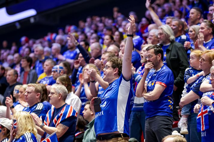 „Mitt fyrsta mót var í Magdeburg í Þýskalandi árið 2007 þegar við unnum meðal annars frækinn sigur á Frökkum,“ segir séra Guðni Már en hann hefur verið með stórmótabakteríuna í blóðinu síðan og kíkt af og til á strákana okkar. Klippa: Séra Guðni spáir Íslandi í undanúrslit „Að standa og syngja þjóðsönginn með löndum sínum er það sem gerir þetta einstakt. Það er hægt að fara á fótboltaleiki í Manchester til að mynda en þá ertu meira eins og túristi. Hér snýst þetta um hjartað, fólkið og auðvitað geggjað lið. Öll þjóðin er að horfa. Ástæðan fyrir því að allir eru að horfa er að við eigum lið í heimsklassa.“ Guðni Már var mættur til Malmö í gær til þess að hjálpa við að ýta liðinu yfir þröskuldinn inn í undanúrslitin. Guðni Már líflegur í stúkunni í gær.vísir/vilhelm „Ég ætla bara að segja það. Við erum að fara í undanúrslit. Ég ætla að trúa því. Næstu ár eru spennandi. Næsta mót er í Þýskalandi. Það eru margir heima að hugsa núna af hverju fór ég ekki út. Nú er tækifærið að byrja að safna. 20 þúsund á mánuði og þá verður allt klárt fyrir Þýskaland,“ segir Guðni kátur en hann mun láta vel í sér heyra á leiknum gegn Slóveníu á eftir. „Ég held að þeir komi þreyttir gegn okkur. Ef að drengirnir eru komnir með bragð af undanúrslitunum þá eru þeir að fara þangað.“