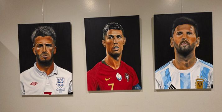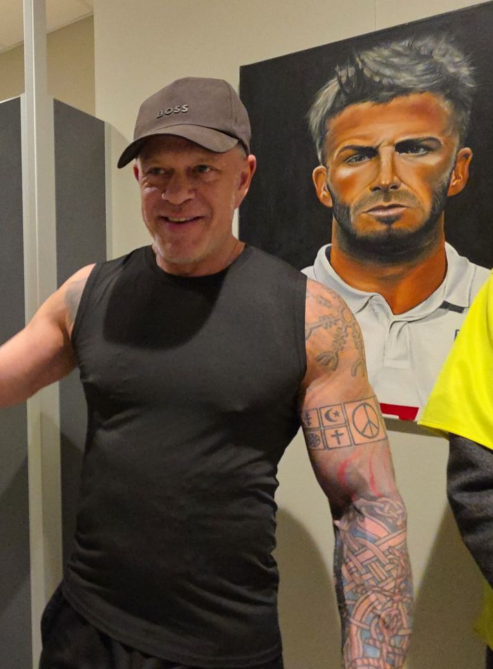 Jói Fel málar með puttunum Magnús Hlynur Hreiðarsson skrifar 30. janúar 2026 21:05 Jói Fel listamaður, bakari og matreiðslumaður, sem heitir fullu nafni Jóhannes Felixson og er með málverkasýningu þessa dagana á veggjum Sundhallar Selfoss. Magnús Hlynur Hreiðarsson Málverk eftir Jói Fel eins og hann er alltaf kallaður hafa vakið mikla athygli á veggjum Sundhallar Selfoss því þar eru til sýnis fjölmörg verk hans, til dæmis af þríeykinu í Covid og nokkrum heimsfrægum knattspyrnustjörnum. Margar af myndunum málar hann eingöngu með puttunum. Sundhöll Selfoss er að verða vinsæll sýningarstaða fyrir listamenn að sýna verk sín en nú er það Jói Fel, sem er með nokkur verka sinna á veggjunum á ganginum þar sem gengið er í búningsklefana. Fjölmargir hafa mætt til að skoða sýninguna, sem opnaði 19. janúar og stendur til 19. febrúar. „Svo er þetta eingöngu málað með puttunum, það kemur enginn pensill eða penni eða neitt nálægt þessu. Þannig að ég klessi litnum á og svo nudda ég með puttanum og dreg úr,” segir Jói þegar hann sýndi puttamyndirnar sínar. Svo eru hefðbundnar myndir á sýningunni, sem hann málar með pensli eða penslum eins og af þríeykinu, þeim Ölmu, Víði og Þórólfi. Svo er Jói líka búinn að mála þessar knattspyrnuhetjur. Þekktar knattspyrnuhetjur, sem Jói hefur málað.Magnús Hlynur Hreiðarsson „Og það er svolítið gaman að vera hérna í Sundhöllinni á Selfossi en ég segi World Class af því að ég mæti hérna á hverjum degi í World Class og það er svo gaman að hafa svona mikið af fólki, sem er að labba hérna ganginn, þannig að þetta er ekkert venjuleg málverkasýning, hérna koma þúsund manns á dag og skoða myndirnar mínar,” segir Jói kampakátur. Þannig að þú ert ekki bara að elda og baka, þú málar líka? „Já, já þetta er áhugamálið og ég geri þetta svona á kvöldin og helgar þegar ég er í smá fríi”. Sýningin er opin á opnunartíma Sundhallar Selfoss og hefur notið mikilla vinsælda til þessa.Magnús Hlynur Hreiðarsson Og Jói er að sjálfsögðu stoltur af myndunum sínum. „Jú, ég er mjög stoltur af þessu og ég vona bara að hinir, sem koma á sýninguna séu stoltir og ánægðir með þetta,” segir Jói. Og að lokum hnyklaði Jói aðeins vöðvana fyrir okkur enda engin skortur á þeim á líkama hans. „Ég verð sextugur á næsta ári, ég er búinn að segja það, ég ætla að vera flottasti sextugasti karlmaðurinn á Íslandi, það er bara svoleiðis,” sagði Jói hlæjandi. Jói, sem segist ætla að verða flottasti sextugasti karlmaðurinn á næsta ári þegar hann fagnar 60 ára afmæli sínu.Magnús Hlynur Hreiðarsson Árborg Menning Mest lesið Fífldjarft að fara í formanninn en varaformannsembættið...? Innlent Segir um að ræða alvarlega aðför að sjálfstæði forseta Íslands Innlent Hýdd 140 sinnum fyrir áfengisneyslu og kynlíf utan hjónabands Erlent Ákæru fyrir manndráp vísað frá Erlent Vísar því á bug að HSÍ fái ekkert fyrir sinn snúð Innlent Nýbirt skjöl varpa ljósi á dánarstund Epstein Erlent Ríkisstjórnin rugli og olíufélögin ekki sökudólgurinn Innlent Forsætisráðherra muni alltaf hafa samráð við forseta Innlent Játaði brot sín og sleppur ekki aftur við fangelsisvist Innlent Afar sérstakt að lækka laun og það á verkalýðsdaginn sjálfan Innlent Fleiri fréttir Þúsundir kvartana vegna leigubílaaksturs en fagnar breytingum Breki Atlason gefur kost á sér á lista Miðflokksins Skjálfti fannst í Hveragerði Jói Fel málar með puttunum „Voðalega eru Íslendingarnir peppaðir“ Vísar því á bug að HSÍ fái ekkert fyrir sinn snúð Handboltaveisla í beinni, málsvörn olíufélaga og fögnuður leigubílstjóra Forsætisráðherra muni alltaf hafa samráð við forseta Rannsókn vegna Deildu.net hætt tíu árum frá kæru Ríkisstjórnin rugli og olíufélögin ekki sökudólgurinn Betri að innleiða tilskipanir en verri að innleiða reglugerðir Segir um að ræða alvarlega aðför að sjálfstæði forseta Íslands Hitni undir olíufélögum sem þurfi að passa sig Stórleikurinn riðlar dagskrá margra Afar sérstakt að lækka laun og það á verkalýðsdaginn sjálfan Kristrún ræðir verðbólguna og allt á suðupunkti fyrir leikinn í kvöld Aldrei verið gefnar út fleiri rauðar viðvaranir Finnist hvergi eins sterk skilyrði til umhverfisverndar í lagareldi Streymi: Heilsan okkar: Meðferð offitu hjá fullorðnum Burðardýr hlaut þungan dóm fyrir vökvasmygl Fífldjarft að fara í formanninn en varaformannsembættið...? Játaði brot sín og sleppur ekki aftur við fangelsisvist Ráðhús Árborgar sprungið – 10 starfsmenn fluttir í annað húsnæði Streymi: Málþing um stöðu fatlaðra barna í íþróttum Lögregla eltist við afbrotamenn Harma launalækkanir í fiskeldi á Vestfjörðum Myndbirtingar foreldra geti skapað hættu Óvissustigi lýst yfir vegna snjóflóðahættu „Muni ekki valda neinu öðru en umferðaröngþveiti“ „Mér þykir leiðinlegt að þetta gangi ekki betur“ Sjá meira