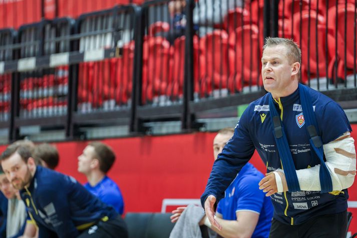 Valur bar sigurorð af KA, 36-31, þegar liðin leiddu saman hesta sína í N1-höllina að Hlíðarenda í 18. umferð Olís-deildar karla í handbolta i dag. Valur komst yfir strax í upphafi leiks og jók forskot sitt hægt, rólega og stöðugt í fyrri hálfleik. Staðan í hálfleik var síðan 16-12 Valsmönnum í vil sem höfðu góð tök á þessum leik frá upphafi til enda. Leikmenn Vals héldu áfram að auka við forystu sína í seinni hálfleik og um miðjan seinni hállfeikinn var staðan 27-20 fyrir Val. KA-menn náðu að narta í hæla Vals og minnkuðu muninn í þrjú mörk, 28-25, þegar Arnór Ísak Haddsson skoraði rúmum tíu mínútum fyrir leikslok. Þá fundu Valsmenn fjölina á nýjan leik og heimamenn sigldu að lokum sannfærandi fimm marka sigri í höfn. Lokatölur í leiknum urðu 36-31 en þessi sigur Valsliðsins fleytir liðinu á topp deildarinnar. Valur hefur 28 stig á toppnum en Haukar eru í öðru sæti með 26 stig og FH kemur þar á eftir með sín 25 stig. ÍBV og Aftureldinga hafa svo 23 stig hvort lið í fjórða til fimmta sæti. KA situr svo í sjötta sætinu með 22 stig. Ágúst Þór Jóhannsson, þjálfari Vals, ræðir við lærisveina sína. Visir/Pawel Ágúst Þór: Orkustigið var gott allan leikinn „Ég var sáttur við það hvernig við nálguðumst þetta verkefni. Við mættum af gríðarlegum krafti inn í þennan leik og náðum fljótlega undirtökunum. Við spiluðum góða vörn heilt yfir í leiknum og fengum fáar brottvísanir sem er mikilvægt þegar þú er að spila við KA þar sem þeir eru mjög góðir í yfirtölu,“ sagði Ágúst Þór Jóhannsson, þjálfari Vals, léttur líkt og hans er von og vísa að leik loknum. „Það lögðu margir leikmenn eitthvað í púkkinn og orkustigið í liðinu var einkar gott og það skilaði þessum sigri. Við erum að spila án Magnúsar Óla, Dags Árna og Agnars Smár og ungir leikmenn eins og Gunnar Róbertsson og Dagur Leó eru að taka við keflinu og axla ábyrgð sem er afar jákvætt,,“ sagði Ágúst Þór enn fremur. „Liðið er á góðum stað og það hefur verið góður stígandi í spilamennskunni eftir slaka frammistöðu á móti Haukum í fyrsta leiknum eftir landsleikjahléið. Við vorum flatir í þeim leik en höfum stigið upp eftir það og ég er ánægður með stöðuna,“ sagði hann. „Við þurfum hins vegar að halda vel á spilunum og nú er bara að endurheimta eftir þennan bardaga og búa okkur vel undir næsta leik. Það er alltaf eitthvað sem er hægt að bæta og við stefnum að því að bæta okkur leik frá leik,“ sagði Ágúst um framhaldið. Andri Snær: Varnaleikurinn ekki nógu öflugur framan af leik „Varnarleikurinn var ekki nógu góður í fyrri hálfleik og af þeim sökum grófum við okkur ofan í holu sem er erfitt gegn jafn sterku liði og Valur hefur á að skipa. Það vantaði upp á grimmd og við náðum ekki loka þeim glufum sem við ætluðum og það er svekkjandi,“ sagði Andri Snær Stefánsson, þjálfari KA, eftir leik. „Varnarleikirinn var þéttari í seinni hálfleik og við náðum að koma okkur inn í leikinn. Því miður náðum við ekki að snúa taflinu okkur í vil en það bara áfram gakk eftir þetta tap,“ sagði Andri Snær þar að auki. „Til þess að bæta gráu ofan á svart missum við Morten Linder. Mig grunar að hann hafi farið úr axlarlið og það er vont ef að við missum hann út í næstu leikjum okkar,“ sagði hann. „Nú er bara að koma okkur upp á hestinn aftur. Það eru spennandi verkefni fram undan bæði í deild og bikar og við hlökkum til þeirra. Við höfum verið að spila vel eftir áramót og erum með hörkulið sem getur gert skemmtilega hlut það sem eftir lifir tímabils,“ sagði Andri um komandi tíma hjá norðanmönnum. Andri Snær Stefánsson, þjálfari KA, hefði viljað sjá sterkari varnarleik í fyrri hálfleik. Vísir/Pawel
