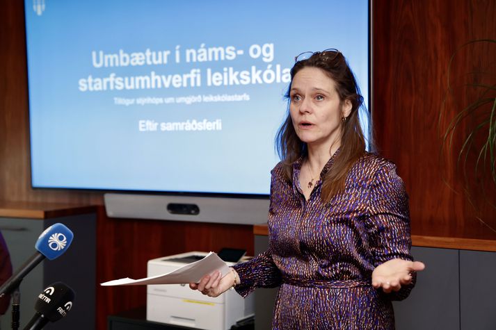 Leikskólar Reykjavík Stytting vinnuvikunnar Kjaramál Mest lesið „Maður eiginlega skammast sín eftir á að hafa verið stressaður“ Innlent Skoða að ná Lúðvík upp áður en sprungan verður fyllt Innlent Vara við því að færð spillist í kvöld Innlent Rukka ekki fyrir 36 tíma leikskóladvöl Innlent Kynna breytta Reykjavíkurleið Innlent Nýr samfélagsmiðill bara fyrir íslenskt samfélag Innlent Seldi Pokémon-spjald á yfir tvo milljarða Erlent Földu fíkniefni í morgunkornspökkum og fengu send Innlent Ástæða til að forðast hinn tvöfalda lás Innlent Gamall sófi og múrsteinar komu upp um barnaníðing Erlent Fleiri fréttir Lögreglan leitar manns Annar bíll möglega í „samfloti“ þegar banaslysið varð Ný leið í leikskólamálum kynnt og von á snjókomu í kvöld Rukka ekki fyrir 36 tíma leikskóladvöl Deila um vegslóða fyrir Hæstarétt Körfuboltastjarna íhugar framboð í Garðabæ Íhugar alvarlega formannsframboð hjá Vinstri grænum Ástæða til að forðast hinn tvöfalda lás Komi öllum við hverjir kaupa vændi eða ætli að gera það Vara við því að færð spillist í kvöld Sundhöllinni lokað á meðan píparar ráða ráðum sínum Flykktust upp í turn til að sjá hvort sexan kæmist í loftið Kynna breytta Reykjavíkurleið Bein útsending: Ásgeir og Þórarinn mæta fyrir þingnefnd Dregur líklega úr svifryksmengun seint í dag Skoða að ná Lúðvík upp áður en sprungan verður fyllt „Maður eiginlega skammast sín eftir á að hafa verið stressaður“ Grunaður fíkniefnasali stöðvaður fyrir að tala í síma Á ekki von á neinni byltingu innan Framsóknarflokksins Földu fíkniefni í morgunkornspökkum og fengu send Nýr samfélagsmiðill bara fyrir íslenskt samfélag Opinbera komið til móts við fimm ábendingar af 23 Óhollustuskattur hafi mest áhrif á þá tekjulægri Gunnar, Guðfinnur og Sigríður á leið úr bæjarstjórn „Alveg hræðilegt ástand“ Aldraðir stíga fram og opna sig um „hræðilega stöðu“ Ekið á gangandi vegfaranda Suðurlandsvegi lokað vegna áreksturs tveggja bíla „Þetta er sorglegur dagur fyrir lýðræðið“ „Kristrún eini hagfræðingur landsins sem hefur rétt fyrir sér“ Sjá meira