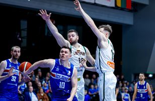 Fyrsti sigur Íslands á Litháen í 34 ár Óskar Ófeigur Jónsson skrifar 27. febrúar 2026 22:26 Elvar Már Friðriksson sést hér umkringdur liðsfélögum sínum í leikslok. Vísir/Hulda Margrét Íslenska karlalandsliðið í körfubolta vann í kvöld sinn fyrsta sigur á Litháen síðan í janúar 1992. Íslenska liðið lenti mest 21 stigi undir í leiknum en tryggði sér 86-85 sigur með því að vinna lokaleikhlutann 32-17. Ísland vann 111-104 sigur á Litáen í Laugardalshöllinni 23. janúar 1992 eftir að staðan var jöfn í hálfleik, 47-47. Þessi sigur og sigurinn í kvöld eru einu skiptin sem Ísland hefur unnið þessa miklu körfuboltaþjóð. Litháar voru búnir að vinna níu síðustu landsleiki þjóðanna. Magnús Helgi Matthíasson og Teitur Örlygsson voru stighæstir hjá íslenska landsliðinu í þessum sigri fyrir rúmum þremur áratugum með 24 stig hvor en Guðmundur Bragason skoraði 23 stig. Leikstjórnendurnir Jón Kr. Gíslason (12 stig) og Tómas Holton (10 stig) komu svo næstir. Þrír feður leikmanna íslenska landsliðsins í kvöld tóku þátt í þessum leik en það voru fyrrnefndur Guðmundur, faðir Jóns Axels, Henning Hennings, faðir Hilmars Smára, og Jón Arnar Ingvarsson Ingvarsson faðir Kára. Landslið karla í körfubolta Mest lesið „Í síðustu viku sögðu þeir að ég væri versti leikmaður í heimi“ Fótbolti Sjáðu sigurkörfuna: „Elvar Friðriksson, ertu ekki að grínast“ Körfubolti „Þetta voru orðnar hættulegar aðstæður“ Íslenski boltinn „Sagði að ég væri lítill svo ég sagði honum að halda kjafti“ Sport Utan vallar: Himnafaðirinn, Jordan og kvöldið hans Elvars Körfubolti Býður út Ólympíugallann sinn og áhuginn er gríðarlegur Sport Uppgjör: Ísland - Litáen 86-85 | Elvar tryggði sigurinn á ögurstundu Körfubolti Flautaði leikinn af þegar FH-ingar komu ekki út í seinni hálfleik Íslenski boltinn „Þetta var eins og Guð sjálfur væri mættur á völlinn“ Körfubolti Chelsea setti enskt met í taprekstri Enski boltinn Fleiri fréttir Í öngum sínum eftir tapið á Íslandi: „Eitt neyðarlegasta tap í sögu þjóðarinnar“ Magnaðar myndir frá endurkomu aldarinnar Utan vallar: Himnafaðirinn, Jordan og kvöldið hans Elvars Sjáðu sigurkörfuna: „Elvar Friðriksson, ertu ekki að grínast“ „Þetta var eins og Guð sjálfur væri mættur á völlinn“ Uppgjör: Ísland - Litáen 86-85 | Elvar tryggði sigurinn á ögurstundu Fyrsti sigur Íslands á Litháen í 34 ár Elvar Már: „Þetta eru þvílíkir naglar“ Ítalir fóru illa með Bretana Í toppstandi þrátt fyrir að úða í sig pasta á Ítalíu Á íslenska konu og barn en mætir Íslandi í kvöld Komst norður í snjó, búskap og dorg: „Dásamlegt“ Heim í hlýjuna en alls ekki á heimleið Chris Bosh vaknaði í eigin blóðpolli: „Glaður að vera á lífi“ Almar og félagar með augu allra á sér annað kvöld Skorti orku og ástríðu Orri með slitið krossband og þarf í aðgerð Íslendingarnir sem fá ekki að spila fyrir Ísland Uppgjörið:Valur - KR 68-71| KR slapp með skrekkinn í Reykjavíkurslagnum Toppliðið sótti tvö stig til Grindavíkur Óttast að meiðsli Orra séu alvarleg Orri borinn meiddur af æfingu landsliðsins Bikarmeistarablús í Höllinni í boði Ármenninga Berglind Katla með stórleik og Stjörnukonur byrja á sigri Extraleikarnir: Tommi stóð í algjörum stríðsmanni en Nabblinn sá ekki neitt Sleit hásin í sumar og er núna með sársaukafull útbrot „Það sem er búið að gera í allan vetur virkar ekki“ Segir að Grindvíkingar verði að passa vel upp á gömlu kallana Var rekinn en hefndi sín: „Hefði verið búið að berja hann í spað“ Frank Booker eldri látinn Sjá meira