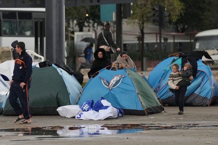 AFP greindi einnig frá því í morgun að Bandaríkjamenn eða Ísraelar hefðu gert árás á hús í Baghdad, þar sem fjórir létust. Tveir þeirra eru sagðir hafa verið íranskir ráðgjafar hópa sem hafa notið stuðnings stjórnvalda í Tehran. Varnarmálaráðuneyti Sameinuðu arabísku furstadæmana sagði í morgun að loftvarnir ríkisins hefðu skotið niður eldflauga og dróna frá Íran í morgun. Lofthelgi landsins var lokað um tíma en hefur nú verið opnuð á ný. Greint var frá því í gær að Ísraelar hefðu farið inn í suðurhluta Líbanon í „afmarkaðar“ aðgerðir gegn Hezbollah og gefið út viðvörun til þúsunda íbúa um að snúa ekki heim að svo stöddu. Evrópuleiðtogar lýstu alvarlegum áhyggjum vegna málsins og sögðu innrás geta leitt til hörmungarástands á svæðinu. Fjöldi fólks er á vergangi í Beirút og víðar vegna árása Ísraelshers og aðgerða gegn Hezbollah.AP/Hassan Ammar Aðildarríki Atlantshafsbandalagsins hafa brugðist fálega við hótunum Donald Trump Bandaríkjaforseta, sem hefur sagt framtíð Nató í hættu komi bandamenn ekki til aðstoðar við opnun Hormuz-sunds. Leiðtogar Evrópu hafa hins vegar ítrekað að Bandaríkjamenn hafi ráðist gegn Íran án þess að ráðfæra sig við aðra og ekki sé um að ræða aðgerðir af hálfu Nató. Axios greindi frá því í gær að samtal væri hafið á bakvið tjöldinn milli Steve Witkoff, erindreka Trump, og Abbas Araghchi, utanríkisráðherra Íran, en síðarnefndi sagði ekkert hæft í þessu. Þá vændi hann Bandaríkjamenn um að hafa skáldað orðróminn til í þeim tilgangi að hafa áhrif á almenningsálitið og olíuverð.