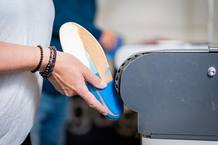 „Sérgerð innlegg eru okkar aðal tól, hitamótandi innlegg passa í skó sem bjóða ekki upp á mikið pláss s.s. fótboltaskó og skíðaskó, höggdempandi innlegg sem passa í íþróttaskó, vinnuskó og gönguskó, fínni innlegg sem passa í spariskó og einnig breytum við inniskóm. Gerð innleggja og smíði fer eftir því hvert vandamálið er og í hvað á að nota innleggin. Skór skipta miklu máli og við hjálpum fólki að velja skó miðað við fótlag og niðurstig, erum með skó frá Hoka og Asics í mismunandi breiddum og gerðum fyrir göngu, hlaup og vinnu .“