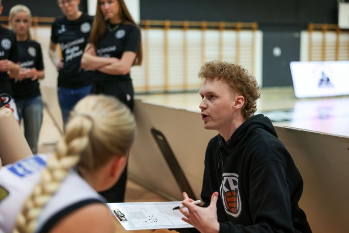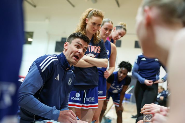 KR bar sigurorð af Keflavík, 85-69, þegar liðin áttust við í fyrsta leik liðanna í átta liða úrslitum Bónus-deildar kvenna í körfubolta að Meistaravöllum í kvöld. KR-ingar náðu frumkvæðinu í leiknum strax í upphafi fyrsta leikhluta og byggðu hægt og rólega upp forskot sem leikmenn liðsins létu aldrei af hendi. Staðan eftir fyrsta leikhluta var 23-17 KR í vil og heimakonur voru átta stigum yfir, 43-35, þegar liðin gengu til búningsherbergja í hálfleik. Eve Braslis skoraði 25 stig í leiknum og hirti þar að auki 10 fráköst. Vísir/Pawel Gestirnir frá Keflavík komu hins vegar sterkar inn í seinni hálfleikinn og Thelma Dís Ágústsdóttir minnkaði muninn í 45-43 í upphafi þriðja leikhluta. Þá tóku KR-ingar við sér á nýjan leik og með Molly Kaiser í broddi fylkingar náðu heimakonur aftur þægilegri forystu og litu aldrei um öxl eftir það. Það var við hæfi að Molly Kaiser setti niður síðasta skot leiksins sem var sjötta þriggja stiga karfa hennar í leiknum. Niðurstaðan sannfærandi 16 stiga sigur KR-liðsins sem er komið 1-0 yfir í einvígi liðanna. Daníel Andri Halldórsson fer yfir málin með leikmönnum sínum. Vísir/Pawel Daníel Andri: Náðum að stöðva flæðið hjá þeim „Það var gríðarleg samheldni í liðinu og mikil orka í því sem við vorum að gera. Leikmenn voru óhræddir við að taka skotin og það var mikið sjálfstraust í því sem við vorum að gera í sóknarleiknum,“ sagði Daníel Andri Halldórsson, þjálfari KR, sáttur. „Við komum ekki nógu vel inn í þriðja leikhluta en mér leið allan tímann vel með það sem við vorum að gera. Þess vegna tók ég ekki leikhlé þrátt fyrir að þær væru að gera áhlaup. Leikmenn fundu taktinn bara aftur og við komumst í gírinn á báðum endum vallarins,“ sagði Daníel Andri enn fremur. „Keflavík er með lið sem getur verið snöggt að koma til baka og skora mörg stig á skömmum tíma. Það var fátt í Keflavíkurliðinu sem kom mér á óvart og við náðum að stöðva flæðið hjá þeim sem er mikilvægt. Nú er stefnan að fara til Keflavíkur og koma okkur í 2-0,“ sagði hann um framhaldið. „Mér finnst frammistaðan heilt yfir bara ekki alveg nógu góð. Við vorum skrefi á eftir allan leikinn og það vantaði upp á að tengja saman góðar varnir til þess að ná að koma okkur almennilega inn í leikinn,“ Hörður Axel Vilhjálmsson Hörður Axel Vilhjálmsson freistar þess að finna lausnir með leikmönnum sínum. Vísir/Pawel