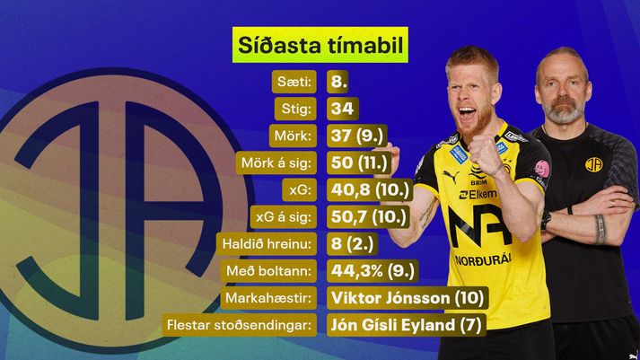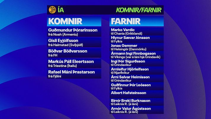 Íþróttadeild Vísis og Sýnar spáir að venju fyrir um gengi liðanna í Bestu deild karla með árlegri spá sinni fyrir mótið. Keppni í deildinni hefst með leik Íslandsmeistara Víkings og Breiðabliks föstudaginn 10. apríl. Íþróttadeild spáir ÍA 5. sæti Bestu deildarinnar í sumar og Skagamenn hoppi upp um þrjú sæti frá því í fyrra. Talsverðar væntingar voru gerðar til ÍA eftir gott gengi sem nýliðar tímabilið 2024. Skagamenn enduðu þá í 6. sæti og voru ekki langt frá því að komast í Evrópukeppni. Þeim tókst hins vegar engan veginn að fylgja þessum árangri eftir í fyrra og lentu fljótlega í ógöngum. Eftir tvö þriggja marka töp í röð fyrir nýliðum ÍBV og Aftureldingar urðu þjálfaraskipti á Skaganum. Jón Þór Hauksson hætti og Lárus Orri Sigurðsson var ráðinn í hans stað. Hann hafði ekki þjálfað í nokkur ár og aldrei áður í efstu deild en rétti kúrsinn aðeins hjá ÍA. En eftir 1-0 sigur á KR um miðjan júlí fengu Skagamenn einungis eitt stig úr næstu fimm leikjum og voru rótfastir við botninn. Þá kom viðspyrnan. Lárus Orri færði Rúnar Má Sigurjónsson í stöðu miðvarðar og fann réttu blönduna. ÍA fór á mikið flug, vann næstu fimm leiki sína og þrátt fyrir tap fyrir KA í næstsíðustu umferðinni, 5-1, voru Skagamenn hólpnir fyrir lokaumferðina. Þar unnu þeir Mosfellinga, 1-0, og enduðu í 8. sæti sem var afar vel af sér vikið miðað við hversu alvarleg staðan var orðin. grafík/bjarki ÍA fékk 25 stig í fimmtán deildarleikjum undir stjórn Lárusar Orra og eftir tímabilið var hann ráðinn til frambúðar. Nóg hefur verið að gera á skrifstofunni hjá ÍA í vetur en liðið samdi við tvo stór nöfn sem komu heim úr atvinnumennsku. Gísli Eyjólfsson kom frá Halmstad í Svíþjóð og Guðmundur Þórarinsson sneri aftur heim eftir þrettán ár erlendis. ÍA samdi einnig við Böðvar Böðvarsson eftir að FH lét hann fara og fékk sömuleiðis hina ungu Rafael Mána Þrastarson frá Fjölni og Markús Pál Ellertsson frá Triestina á Ítalíu. grafík/bjarki Færa má rök fyrir því að ÍA hafi aldrei áður verið jafn stórtækt á félagaskiptamarkaðnum og miklu er til tjaldað á Skaganum. Það eru því talsverðar væntingar til liðsins og verkefnið sem bíður Lárusar Orra er allt annað en þegar hann tók við um mitt síðasta tímabil og átti að bjarga ÍA frá falli. Nokkrir leikmenn ÍA hafa ýmislegt að sanna eftir síðasta tímabil og það er spurning hvort koma nýju mannanna lyfti þeim upp á tærnar. Eftir að hafa aðallega spilað með þrjá miðverði undir stjórn Jóns Þórs spilar ÍA með fjóra varnarmenn hjá Lárusi Orra. Miðjan með Gísla, Guðmund og Hauk Andra Haraldsson lítur ansi vel út á pappír og ætti að vera með þeim sterkari í deildinni. grafík/bjarki Hægri bakvörðurinn Jón Gísli Eyland Gíslason er gríðarlega mikilvægur í sóknarleik ÍA en hann hefur komið að ófáum mörkum undanfarin tvö tímabil. Í fyrra gaf hann sjö stoðsendingar, flestar allra í liði Akurnesinga. Viktor Jónsson mun leiða sóknarlínuna eins og síðustu ár. Hann fór hamförum sumarið 2024 en nýtti færin sín ekki jafn vel í fyrra. Viktor skoraði samt tíu mörk í Bestu deildinni og var mjög öflugur þegar ÍA gekk svo vel undir lok tímabilsins. Lárus Orri Sigurðsson sneri aftur á Skagann með stæl síðasta sumar.vísir/anton Viktori til halds og trausts í framlínunni verða Rafael, Markús Páll, Ómar Björn Stefánsson, Gísli Laxdal Unnarsson, Steinar Þorsteinsson og hinn ungi Gabríel Snær Gunnarsson. Skagamenn njóta krafta hans þó ekki nema hluta af tímabilinu því hann hefur samið við Elfsborg í Svíþjóð. Talandi um unga leikmenn þá vonast Skagamenn væntanlega eftir því að Ísak Máni Guðjónsson, sem stimplaði sig skemmtilega inn í byrjunarliðið seinni hluta síðasta tímabils, taki annað skref fram á við í sumar. Það eru forsendur fyrir góðu sumri á Skaganum og stuðningsmenn ÍA leyfa sér eflaust að dreyma um í það minnsta atlögu að Evrópusæti.