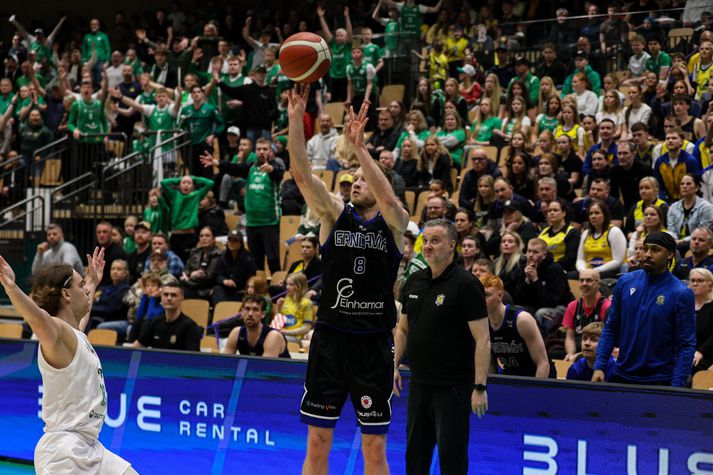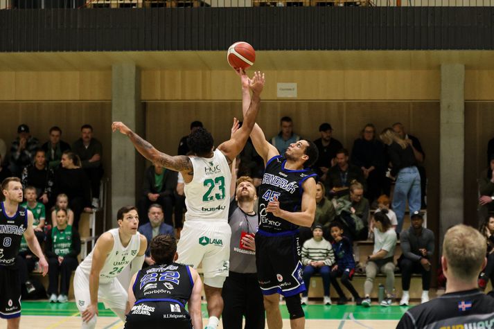 Deildarmeistarar Grindavíkur tryggðu sér sæti í undanúrslitum Bónusdeildar karla í körfubolta eftir sjö stiga sigur á Njarðvík í kvöld, 91-84. Grindavík tapaði fyrsta leik í einvíginu en svaraði með þremur sigrum í röð og vann því seríuna 3-1. Njarðvík var ellefu stigum yfir eftir fyrsta leikhlutann en Grindavík var skrefinu á undan eftir frábæran annan leikhluta. Spennan var í leiknum til loka en Grindvíkingar héldu út og lönduðu sigri. Njarðvík-Grindavík Bónus deild karla 2026Guðmundur/Vísir Leikurinn fór nokkuð fjörlega af stað og byrjuðu heimamenn virkilega sterkt og settu stór skot strax í byrjun og byrjuðu að safna ágætis forskoti. Njarðvík var með full tök á leiknum eftir fyrsta leikhluta og leiddi nokkið sannfærandi og sanngjarnt 28-17. Dwayne Lautier og Jeremy Pargo í baráttunni í kvöldGuðmundur/Vísir Það færðist meiri hiti í leikana í öðrum leikhluta og Grindvíkingar sem virkuðu vankaðir eftir frábæra byrjun Njarðvíkinga í fyrsta leikhluta byrjuðu að taka við sér og setja góð skot niður. Það færðist örlítill skjálfti í lið Njarðvíkinga sem fóru að taka slæmar ákvarðanir og Grindavík fór að refsa. Ólafur Ólafsson setti stór skot undir lok leikhlutans og náði í forystuna fyrir Grindavík þegar nokkrar sekúndur voru eftir að fyrri hálfleik og Grindavík leiddi í hálfleik 43-45. Kristófer Breki á stórar körfur í kvöld.Guðmundur/Vísir Njarðvíkingar komu með krafti út í seinni hálfleikinn og sóttu forystuna aftur. Heimamenn náðu þó aldrei að slíta sig frá Grindvíkingum sem eltu þá eins og skugginn og þegar leið á leikhlutann náði Grindavík í forystuna aftur. Eftir þriðja leikhluta var Grindavík með fjögurra stiga forystu 64-68. Daniel Mortensen og Dominykas Milka í baráttunni í kvöld.Guðmundur/Vísir Eins og við var að búast var mikil spenna í fjórða leikhluta. Bæði lið virkuðu svolítið stressuð fyrstu um sinn og hrædd við að gera mistök. Sóknarleikurinn varð staðari og skotin örlítið brothættari. Jeremy Pargo steig upp og hristi vel upp í þessu í fjórða leikhluta og kom Grindavík í þægilega stöðu með stórum körfum. Þetta gaf Grindavík það andrými sem þeir þurftu til þess að á endanum landa frábærum sjö stiga sigri 84-91 og um leið tryggja Grindavík sigur í seríunni 3-1. Atvik leiksins Jeremy Pargo tekur yfir leikinn í fjórða leikhluta þegar hann setur stór stig og kemur Grindavík í þægilega stöðu eftir að hafa verið í fremur jöfnum leik. Stjörnur og skúrkarJordan Semple var öflugur í liði Grindavíkur og hann var stigahæstur í kvöld með 23 stig. Jeremy Pargo var að setja erfið skot og hann var eins og Rúnar Ingi þjálfari Njarðvíkur lýsti eftir leik „endakall“ sem Njarðvík komst ekki í gegnum. Hann endaði með 19 stig í kvöld.Hjá Njarðvík var Dominykas Milka með tvöfalda tvennu, 16 stig og 15 fráköst.Dómaratríóið í kvöldGuðmundur/VísirDómararnirBjarki Þór, Jóhannes Páll og Jón Þór sáu um flautuna í IceMar-höllinni í kvöld. Þetta var ekki þeirra besta frammistaða og virkaði þetta svolítið sem aðeins of stór biti fyrir tríóið í kvöld. Mikill hiti og mikið undir og línan var alls ekki skýr í kvöld.Stuðningsmenn Grindavíkur í kvöldGuðmundur/VísirStemingin og umgjörðStemningin í Njarðvík var tryllt og allt það sem við viljum fá í úrslitakeppni. Báðar stuðningsmannasveitir fá stórt hrós fyrir að gera þetta að frábærri upplifun!Stuðningsmenn Njarðvíkur í kvöldGuðmundur/VísirViðtölJóhann Þór Ólafsson fer yfir málin með sínu liði í kvöld.Guðmundur/Vísir„Fáum ágætis tíma núna til þess að stilla saman strengi upp á nýtt“„Varnarlega fannst mér við vera bara nokkuð þéttir og gera þeim erfitt fyrir lengst af“ sagði Jóhann Þór Ólafsson þjálfari Grindavíkur eftir sigurinn í kvöld.„Fyrsta tilfinning er bara sú að við hittum úr stóru skotunum og þeir ekki. Það að leiðandi lendir þetta okkar meginn og við gerum vel í því. Það er svona fyrsta tilfinning strax eftir leik“Njarðvík byrjaði virkilega vel og það var mikilvægt að halda haus.„Við töluðum um það að vilja halda okkur í mómentinu og einbeita okkur bara af einni sókn í einu. Við höfum svolítið strögglað með það í gegnum þessa seríu og það er ekkert leyndarmál“„Það tókst ágætlega í kvöld og við vorum góðir í vörn sem hélt í öðrum leikhluta en svo var þetta bara stál í stál og við gerum vel að sigla þessu yfir línuna“Jóhann Þór gerði seríuna við Njarðvík upp eftir leik.„Njarðvíkingar gera bara mjög vel og sérstaklega komu okkur á óvart varnarlega eða á óvart ekki óvart, við bara leysum það illa fyrstu tvo og hálfan leikinn“„Við gerðum ágætlega í kvöld og bara hrós á þá fyrir að gera mjög vel og eins og ég hef sagt áður í viðtölum eftir þessa leiki að við þurfum að vera betur smurðir sóknarlega og ákvarðanartökur oft furðulegar og við þurfum að fara vel yfir það fyrir næstu seríu“„Við fáum ágætis tíma núna til þess að stilla saman strengi upp á nýtt og gera okkur klára fyrir það stríð“ sagði Jóhann Þór Ólafsson.Rúnar Ingi Erlingsson þjálfari Njarðvíkur ræðir málin við sitt lið í kvöld.Guðmundur/Vísir„Ég er núna bara byrjaður að undirbúa næsta tímabil“„Vonbrigði, það er bara svoleiðis“ sagði Rúnar Ingi Erlingsson svekktur eftir tapið í kvöld.„Við komum mjög flottir inn í leikinn. Mér fannst fyrstu fimmtán mínúturnar þá erum við bara í fullu jafnvægi og við erum að gera allt það sem við vildum gera“„Það er svona nokkurnveginn að ganga upp. Við vorum að hægja á þeim og við náðum að loka aðeins á [Jeremy] Pargo og vorum að 