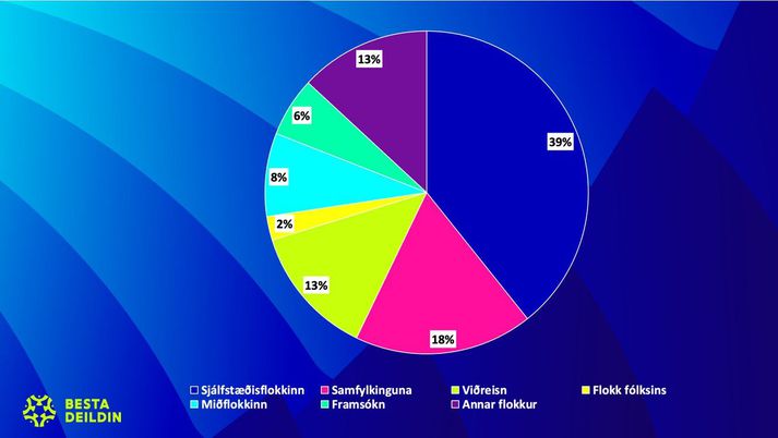Besta deild kvenna Sjálfstæðisflokkurinn Mest lesið KR-ingar komast ekki til Eyja: „Þetta er leiðindamál“ Íslenski boltinn Ungur samherji Elíasar særðist alvarlega í hnífsstungurárás Fótbolti Eðlileg skýring á tættum Laugardalsvelli Fótbolti Svona var fundurinn fyrir Bestu deild kvenna Íslenski boltinn Spjótin standa að Jóni Degi og Freyr stígur inn á milli Fótbolti Fóru yfir hauskúpuleik Garnachos: „Þetta var hræðileg innkoma“ Enski boltinn Kjartan tippar á leiki Arsenal og City út tímabilið Enski boltinn Pressan á Tindastól? „Einhver sálfræði 101 sem hann er að reyna rembast við“ Körfubolti Kærasta Haalands ekki sátt þegar hann kemur allur klóraður heim Enski boltinn Shearer segir að leikmenn Newcastle hafi fleygt Howe undir rútuna Enski boltinn Fleiri fréttir Valsmönnum fjölgar í Mosfellsbæ Breiðabliki spáð titli en Val neðri helmingi Sjálfstæðisflokkur langstærstur í Bestu deild kvenna Svona var fundurinn fyrir Bestu deild kvenna KR-ingar komast ekki til Eyja: „Þetta er leiðindamál“ Spilað inni á Akranesi á miðvikudaginn Unglingalandsliðsfyrirliði frá Blikum í Val „Strákur sem Vesturbærinn hefur beðið lengi eftir“ Stúkan: Skagamenn voru rændir af dómaranum Sjáðu öll mörkin: Veisla í Vesturbænum, tvenna hjá Vuk og Gylfi í skotskónum Hunsaður frá byrjun: „Þetta var bara frekar leiðinlegt og fúlt“ Uppgjörið: Stjarnan - FH 3-2 | Andri Rúnar reyndist Stjörnunni gulls ígildi „Erum á réttri leið“ KR - Þór Ak. 5-2 | Veisla í Vesturbæ Ekki mörg lið í Skandinavíu ráði við KR í þessum gír „Verðum að laga þetta ef við ætlum að láta taka okkur alvarlega“ Uppgjörið: Breiðablik-ÍA 1-0 | Blikar stóðust stórsókn Skagamanna Uppgjörið: Fram-Keflavík 3-1: Vuk Oskar kom, sá og sigraði í sigri Framara Uppgjör: KA-Víkingur 0-2 | Gylfi áfram á skotskónum og Víkingar unnu fyrir norðan „Klárlega léttir þetta pressu“ Uppgjör: Valur-ÍBV 2-1 | Hólmar tryggði Val fyrsta sigur sumarsins Alexander Helgi frá KR í Njarðvík Stuðningsmenn kosta Þór og Víking hundruð þúsunda Gabríel Snær seldur til Svíþjóðar Launin ekki aðalatriði og bónus að hafa fjölskylduna nálægt „Ég get ekki breytt þessu“ Oliver keyptur til KA „Hleyp jafn hratt og Mikael“ Arnar sleit sin í hné og bíður svara varðandi framhaldið Hjartað brotið, hent eins og hverri annarri kúkableyju Sjá meira