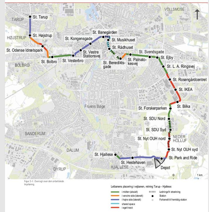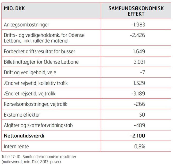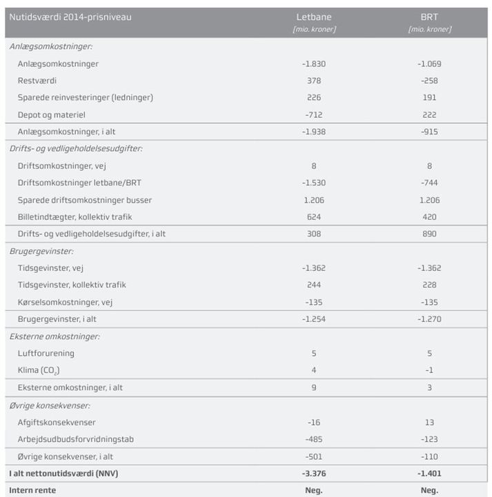 Aðalfyrirmyndin að Borgarlínu er Bussveien í Stavanger, þar sem 50 km af hraðvagnakerfi í hæsta gæðaflokki er í byggingu. Það verður Evrópumet í umfangi og kostnaði, sem hefur margsinnis farið fram úr áætlunum. Borgarlínunni er svo ætlað að taka Evrópumeistaratitilinn af Stavanger. Bussveien í Stavanger. Heimild: Rogaland Fylkeskommune Áætlaður kostnaður við Bussveien er nálægt 200 milljarðar ISK. Framkvæmdin er nokkuð umdeild, sbr. þessa frétt. Léttlestir í Danmörku Í umræðunni hér á landi hefur einnig verið bent á léttlestir í Danmörku sem góðar lausnir. Af einhverjum ástæðum hefur það ekki farið hátt að dönsku verkefnin eru öll með mikla neikvæða arðsemi! Léttlestir í Danmörku hafa verið byggðar í 3 borgum, Árósum, Kaupmannahöfn og Óðinsvéum. Þar eð stærð síðastnefndu borgarinnar er svipuð og höfuðborgarsvæðið er rétt að skoða nánar léttlestakerfið í Óðinsvéum. Myndin sýnir 1. áfanga, sem er samtals um 14 km langur. Fyrsti áfanginn var tekinn í notkun 2022. Farþegafjöldinn var langt undir væntingum til að byrja með, sbr. þessa frétt en virðist nú vera að ná sér á strik og fróðlegt verður að fylgjast með þróuninni næstu árin. Í skýrslu frá 2013 er gerð arðsemisgreining fyrir 1. áfangann: Það er einkum tvennt sem vekur athygli. Í fyrsta lagi er núvirði framkvæmdarinnar neikvætt upp á 2.1 milljarð DKK á verðlagi 2013 (um 40 milljarðar ISK) og arðsemi (innri vextir) aðeins 0,8 %. Þetta er greinilega þjóðhagslega óhagkvæm framkvæmd, þegar kostnaður við umferðartafir sem léttlestin veldur vegna fækkunar akreina fyrir almenna umferð er tekinn með í reikninginn. Í öðru lagi vekur það athygli að kostnaður við auknar umferðartafir er um tvöfalt meiri en virði tímasparnaðar farþega í léttlestinni. Þetta minnir óneitanlega á niðurstöður rannsóknar SFA (Samgöngur fyrir alla) og RSE (Rannsóknarsetur um samfélags- og efnahagsmál) um valkosti við Borgarlínu, þar sem núvirði Borgarlínu (allt kerfið, 60 km) er metið neikvætt upp á 210 milljarða ISK, sbr. þessa skýrslu. Tekin hefur verið ákvörðun um að ráðast í 2. áfanga léttlestakerfis í Óðinsvéum, sjá skýrslu. Á bls. 129 í skýrslunni er þess einnig getið að arðsemi léttlesta í Árósum og Ring 3 í Kaupmannahöfn er neikvæð. Plusbus í Álaborg Árið 2023 var 1. áfangi hraðvagnakerfisins Plusbus tekinn í notkun. Leiðin er 12 km löng og kostaði aðeins um 500 milljón DKK, eða um 10 milljarða ISK. Tiltölulega lágur kostnaður á hvern km útskýrist að hluta til vegna þess að fyrir var sérgata fyrir strætó á 5 km hluta leiðarinnar. Þegar útfærsla Plusbus er skoðuð nánar í samanburði við Borgarlínuna þá er ljóst að Plusbus er í töluvert lægri gæðaflokki og spurning hvort hraðvagnakerfið uppfyllir viðmið stofnunarinnar Institute for Transport and Development Policy (ITDP). Ef ekki þá er það dýr útgáfa af BRT-Lite. Plusbus er engu að síður hágæða almenningssamgöngukerfi, enda stenst það viðmið ITDP um ferðatíðni. Hugmyndin er að bæta síðar við öðrum áfanga, sem gæti orðið svipaður eða ívið lengri. Hraðvagnakerfið í Álaborg verður samt mun umfangsminna og einfaldara en áætlanir um Borgarlínukerfið. Upphaflega hugmyndin var að byggja léttlest í Álaborg. Í þessari skýrslu frá 2014 er arðsemi léttlestar borin saman við arðsemi hraðvagna (BRT). Niðurstöður eru sýndar í töflunni hér fyrir neðan: Eins og sjá má af töflunni er arðsemi léttlestar mun lakari og var því ákveðið að byggja hraðvagnakerfi (BRT). Það vekur athygli að áætlaður kostnaður við umferðartafir sem Plusbus veldur vegna niðurfellingar akreina fyrir almenna umferð er um 6 sinnum meiri en áætlað virði tímasparnaðar farþega. Rétt er að benda á að áætlaður stofnkostnaður Plusbus er nálægt tvöfalt hærri en raun varð á. Núvirðið hefur því e.t.v. ekki orðið jafn neikvætt og taflan sýnir. Hraðvagnakerfi í Svíþjóð Í Stokkhólmi, Malmö og nokkrum fleiri borgum eru hraðvagnakerfi sem Svíar telja hágæða almenningssamgöngukerfi og flokka þau sem BRT-kerfi, jafnvel þó þau standist ekki viðmið ITDP um gæði innviða. Svíar nota eins og Danir sína eigin skilgreiningu á BRT. Hér má sjá stutta skilgreiningu og yfirlit yfir kerfin. Það blasir við að stofnkostnaður á hvern km í sænskum hraðvagnakerfum er yfirleitt ekki hærri en nokkur hundruð milljónir ISK á hvern km. Hins vegar er ferðatíðnin há, sem skiptir mestu máli. Þarna kemur líka fram að þar sem umferðarmagn á götu er minna en 80% af flutningsgetu þá er lítil þörf á forgangsakrein. Samantekt og lokaorð Ef akreinar eru í töluverðum mæli teknar af almennri umferð í skandinavískum borgum af svipaðri stærð og höfuðborgarsvæðið í því skyni að gera forgangsakreinar fyrir léttlestir eða hraðvagna, þá getur kostnaður vegna umferðartafa hæglega orðið meiri en ávinningur farþega. Afleiðingin verður gjarnan neikvæð arðsemi léttlestar- eða hraðvagnaleiðar. Hraðvagnakerfi í sænskum borgum kosta gróft reiknað 10 sinnum minna á hvern km en Bussveien í Stavanger. Tíðni ferða er há, allt að 5 mín. Af þeim sökum er hér um að ræða hágæða almenningssamgöngur. Samgönguyfirvöld á höfuðborgarsvæðinu geta dregið þann lærdóm af þessu að með tilkomu Miklubrautarganga, Sundabrautar og fleiri vegabóta þá má tryggja að umferðarmagn á Suðurlandsbraut og Laugavegi verði innan við 80 % af flutningsgetu. Þá er ekki þörf á samfelldum forgangsakreinum á götunum. Í mesta lagi verður þörf á stuttum forgangsakreinum við nokkur umferðarljós. Með snjallstýringu umferðarljósa þar sem veita má strætó forgang, sérstaklega ef hann er á eftir áætl