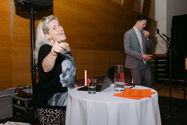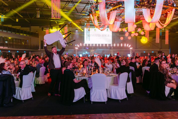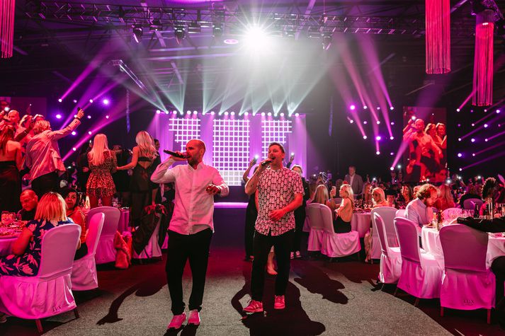 Árshátíðin er haldin fyrir starfsfólk allra félaga Haga annað hvert ár, þar má nefna starfsfólk frá skrifstofu Haga, Hagkaupum, Olís, Bónus, Aðföngum, Bönunum, Zöru, Stórkaup, Lemon og Eldum Rétt. Meðal tónlistarmanna sem komu fram á árshátíðinni voru Herra hnetusmjör, Daníel Ágúst. Emmsjé Gauti og Klara Einars. Gestir fylltu dansgólfið og sungu með, en í hliðarsal var líflegt karókí þar sem Sandra Barilli stýrði stemningunni. Plötusnúðurinn Dóra Júlía lokaði svo kvöldinu og hélt uppi fjöri fram á síðustu mínútu. Hér að neðan má sjá skemmtilegar myndir frá kvöldinu sem Steina Matt tók: Herra hnetusmjör glóandi grænn og glaður.Steina Matt Auddi og Steindi skemmtu fólkinu.Steina Matt Árshátíðargestir voru ánægðir með skemmtiatriðin.Steina Matt Fagnaðarlæti!Steina Matt Fólkið sveiflaði servíettum.Steina Matt Stuðið var greinilega mikið.Steina Matt Daníel Ágúst appelsínugulur og sætur.Steina Matt Dóra Júlía hress og kát.Steina Matt Sandra Barilli stýrði karíókí.Steina Matt Þessi klappaði með.Steina Matt Hnetan alltaf öflug.Steina Matt Þrjár diskópíur.Steina Matt Klara Einars glæsileg.Steina Matt Daníel Ágúst sýndi fimi sína.Steina Matt Emmsjé hoppaði og skoppaði.Steina Matt Daníel Ágúst í fíling.Steina Matt