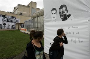 Óeirðanna í Frakklandi minnst Að minnsta kosti 500 manns tóku þátt í göngu í Clichy-sous-Bois, úthverfi Parísar, í dag til að minnast tveggja táningspilta sem léstust úr raflosti fyrir ári. Talið var að drengirnir hefðu verið að flýja lögreglu en dauði þeirra leiddi til óeirða meðal fátækra innflytjenda víða um Frakkland þar sem kveikt var í bæði bílum og húsum. 27.10.2006 15:33