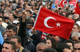 Slagorð hrópuð að ríkisstjórninni Talið er að áttatíu þúsund manns hafi fylgt Bulent Ecevit, fyrrverandi forsætisráðherra Tyrklands, til grafar í höfuðborginni Ankara í dag. 11.11.2006 15:11