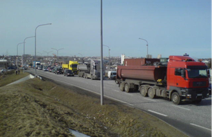 Vörubílar í hægaakstri í Ártúnsbrekku og Suðurlandsvegi Á bilinu 15-20 vörubílar óku hægt upp Ártúnsbrekkuna og inn á Suðurlandsveg nú eftir hádegið og á eftir þeim fylgdu lögreglubílar. Sturla Jónsson, talsmaður vörubílstjóra, var með í för og segir að bílarnir hafi farið smá hring. 11.4.2008 13:44