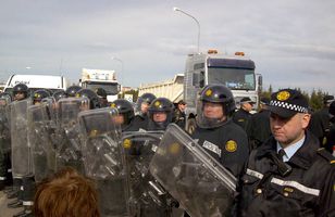 Yfirlögregluþjónn: Stofna almenningi í hættu Til harðra átaka kom um ellefuleytið á milli lögreglu og vörubílstjóra á Suðurlandsvegi, skammt frá Rauðavatni, og voru nokkrir menn handteknir. 23.4.2008 13:03