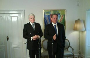 Al Gore mættur á Bessastaði Al Gore, fyrrverandi varaforseti Bandaríkjanna og handhafi friðarverðlauna Nóbels er mættur á Bessastaði. Þar stendur nú yfir blaðamannafundur en Gore er hér í boði forseta Íslands. 7.4.2008 19:00