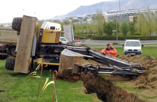 Grafa fór á hliðina í Laugardal Grafa sem var við vinnu í Laugardalnum í dag fór á hliðina og valt niður brekku. Kalla þurfti til bíl með öflugan krana til að reisa hana við. Ekki er vitað til þess að gröfustjórinn hafi hlotið meiðsl af byltunni. 21.5.2008 12:35