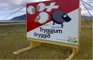 Útlendingahatarar aftur á ferð Stóru skilti merkt Svissneska þjóðarflokknum undir fyrirsögninni „Tryggjum öryggið“ hefur verið komið fyrir uppi á Kjalarnesi og blasir við ökumönnum á leið að Hvalfjarðargöngum. 19.5.2008 11:13