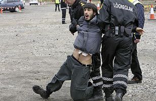 Mótmæltu álverinu í Helguvík Fyrsta skóflustungan að nýju álveri í Helguvík var tekin í dag. Þá voru samningar á milli Norðuráls og Íslenskra aðalverktaka um byggingarframkvæmdir undirritaðir. Nokkur mótmælu voru við athöfnina og þurfti lögregla að hafa afskipti af mótmælendum. 6.6.2008 20:03
