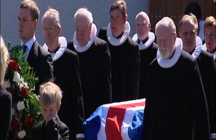 Herra Ólafur Skúlason biskup jarðsunginn Herra Ólafur Skúlason biskup var jarðsunginn í Bústaðakirkju í dag að viðstöddu fjölmenni. Um hundrað prestar voru við athöfnina en það sonur Ólafs, Skúli, sem jarðsöng föður sinn. 19.6.2008 16:18