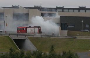 Eldur í Ingunnarskóla Eldur kom upp í Ingunnarskóla fyrr í kvöld. Lögregla og slökkvilið var á staðnum. Íbúi í grennd tók þessa mynd sem sýnir slökkvibíl að störfum og reyk stíga upp frá skólanum. 9.7.2008 23:54