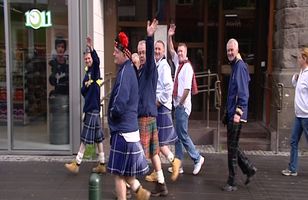 Köflótti herinn fjölmennur á götum borgarinnar Skringilega klæddir karlmenn valsa um götur Reykjavíkur þessa dagana í köflóttum pilsum, jafnvel með fjaðurskúf á höfði. 9.9.2008 12:52