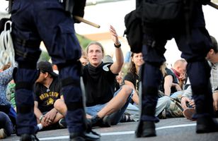 Mótmælendur gerðu sig digra í St. Paul Nýafstaðið flokksþing Repúblikanaflokksins í Minnesota dró að sér fleiri en eindregna stuðningsmenn Johns McCain. Lögreglan í St. Paul handtók um 250 mótmælendur í gær eftir að um eitt þúsund manns komu saman nærri miðborginni þar til að mótmæla stríðsátökum Bandaríkjamanna í Írak og víðar. 5.9.2008 08:27