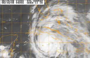 Gustav nálgast Kúbu óðfluga Fellibylurinn Gustav nálgast nú vestasta odda Kúbu með tæplega 20 kílómetra hraða á klukkustund en vindhraði bylsins mælist allt að 155 kílómetrar. 30.8.2008 10:48