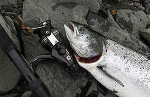 Laxerað á norskum þjóðvegum Það þarf ekki að standa úti í kaldri á og bíða þar og vona með öngulinn sinn eftir að lax bíti á í Tynset í Noregi þessa stundina, því nú er hægt tína þar lax upp af jörðinni í því magni sem hver vill. 17.10.2008 08:40
