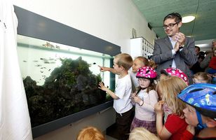 Fiskarnir synda á ný í Vesturbæjarlaug Hulunni var svipt af forláta fiskabúri í anddyri Vesturbæjarlaugar í gær. Mímir, vináttufélag Vesturbæjar, stóð fyrir söfnun meðal íbúa Vesturbæjar og í gær varð afraksturinn öllum ljós. 24.6.2010 06:00