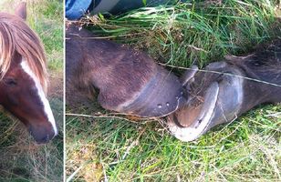 Hryssa krækti saman skeifum og lá bjargarlaus í hálfan sólarhring Hryssan Tíbrá á bænum Skarði í Landsveit krækti saman skeifu á hægri afturfæti í skeifu á hægri framfæti fyrr í vikunni 25.8.2016 08:53