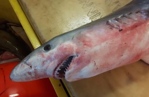 Veiddu fjóra hákarla á fjórum dögum Áhöfnin á Jóni Ásbjörnssyni hefur fengið fjóra hákarla á línu hjá sér á síðastliðnum fjórum dögum. Hákarlarnir komu á línu um tuttugu sjómílur frá Þorlákshöfn en þrír þeirra eru bláháfar sem er ein hættulegasta tegund hákarla í heimi. 6.9.2016 20:00