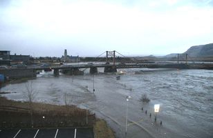 Metrennsli í Norðurá Í Borgarfirði hafa ár flætt yfir bakka sína og gamla brúin yfir Hvítá, milli Ferjukots og Hvítarvalla, er lokuð og íbúar í Ferjukoti því innlyksa. 20.12.2006 19:45