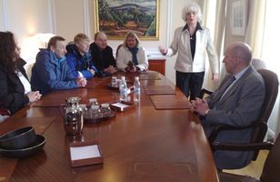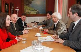 Jóhanna og Steingrímur buðu mótmælendum á fund Jóhanna Sigurðardóttir forsætisráðherra og Steingrímur J. Sigfússon fjármálaráðherra tóku á móti mótmælendum fyrir framan Stjórnarráðið í dag og buðu síðan nokkrum fulltrúum þeirra á fund. Á myndinni má meðal annars þekkja Sturlu Jónsson, vörubílstjóra, sem hefur verið iðinn við að mótmæla síðustu misserin. 8.5.2009 13:25