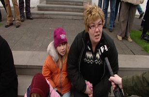 Krefjast tafarlausra aðgerða Einstæð tveggja barna móðir, sem segist ekki lengur eiga í sig eða á, var í hópi mótmælenda sem kröfðust í dag tafarlausra aðgerða til að bæta erfiða stöðu heimilanna í landinu. 8.5.2009 18:45