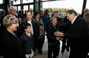 Raggi Bjarna bauð í kaffi og kökur Nokkur fjöldi mætti í anddyri nýju Laugardalshallarinnar í gær þegar Ragnar Bjarnason söngvari hélt upp á 75 ára afmæli sitt í gær með því að bjóða landsmönnum upp á afmælistertu og kaffi. 23.9.2009 04:00