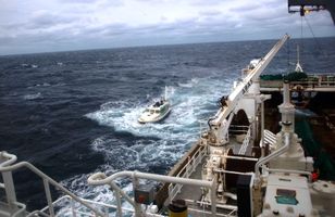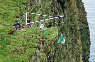 Fénu slakað af bjargbrúninni Það var margt um manninn og fólk á öllum aldri sem tók þátt í leiðangrinum út í Suðurey, suðvestur af Heimaey, um helgina. Þangað fóru fjárbændur á tveimur „tuðrum“, eins og bátarnir eru kallaðir, til að ná í fé sitt og flytja til lands og til að rýja og bólusetja féð sem verður í eynni í vetur. 20.9.2010 02:00
